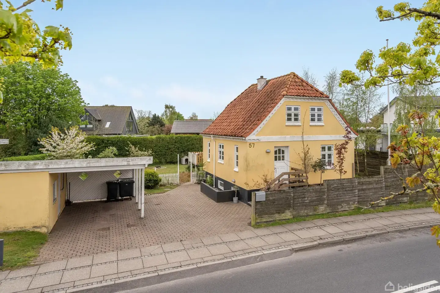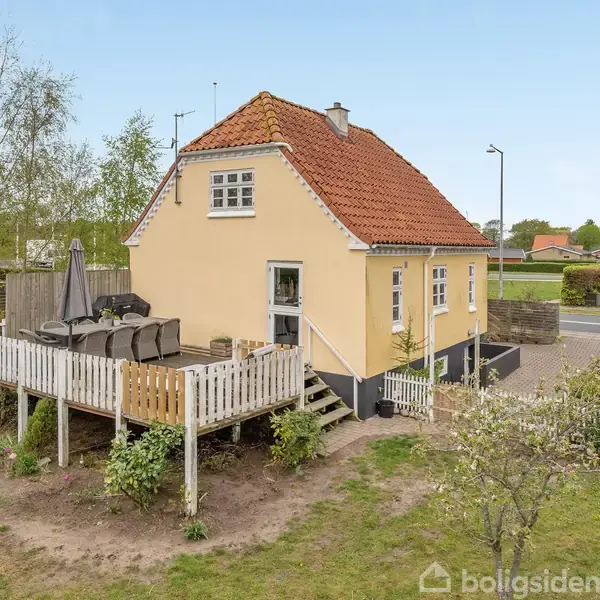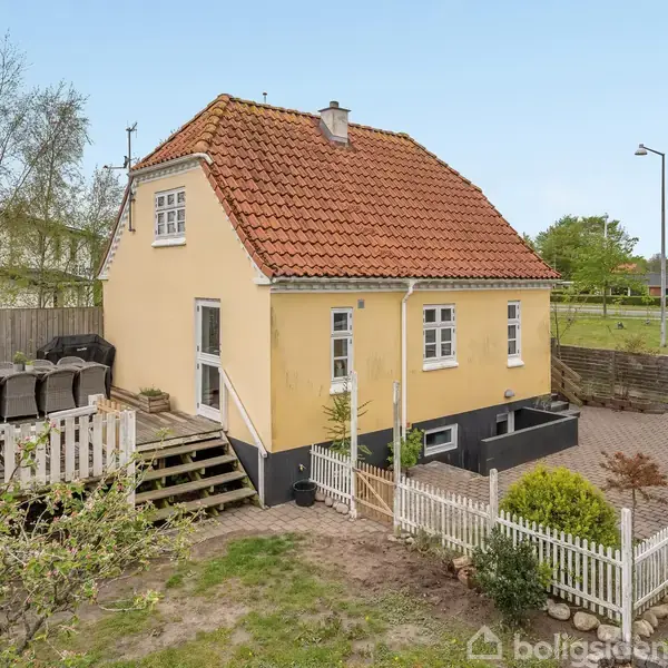 Centralt beliggende villa i SæbyHvis du leder efter et hyggeligt, indflytningsklart byhus i centrum af Sæby, så er denne villa et godt bud. Her får du et flot, lyst køkken i åben forbindelse med spisestue og stue med brændeovn. Fra køkkenet er der udgang til stor, sydvendt træterrasse. Første salen byder på to værelser med loft til kip, mens kælderen rummer villaens store badeværelse, et bryggers og to disponible rum. Hele herligheden er pænt vedligeholdt, og du får meget bolig for pengene.I til