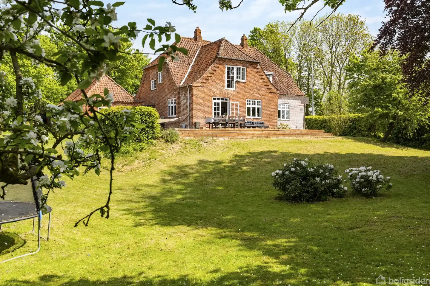 Charmerende rødstensejendom fra 1916 med stor, parklignende have – en sjælden oase af fred og idyl Velkommen til denne smukke og historiske rødstensejendom fra 1916, der forener klassisk charme med moderne funktionalitet. Ejendommen er beliggende i naturskønne og rolige omgivelser, og den store, ugenerede have skaber en sjælden følelse af privatliv og ro. Boligen byder på et rummeligt bryggers med god opbevaringsplads, hvorfra man træder direkte ind i et stort og lyst køkken/alrum. Her får du ma