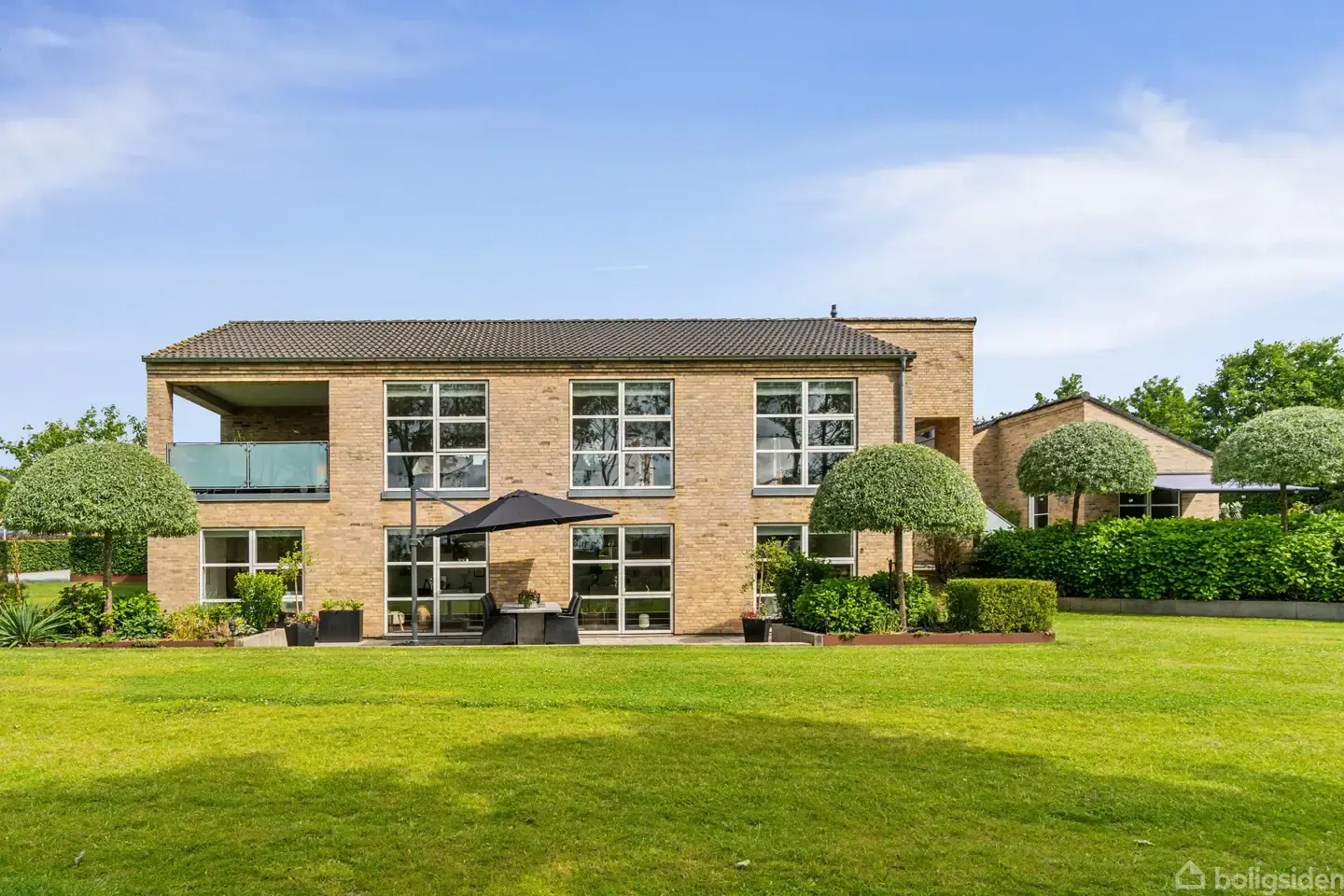 I 2006 blev denne markante villa opført på en skrånende grund, og det har medført en underetage i parterre samt en hævet overetage med et dejligt kig ud over haven. Netop haven harmonerer med det hele, for inde som ude er man gået efter kvalitet og et stilrent look, der vækker glæde dag efter dag. Plads er også et gennemgående tema sammen med de vældige lysindfald. Ejendommen er placeret i Herskind, som er et godt lokalmiljø med mulighed for socialt samvær, og derudover er der kun cirka 20 minut