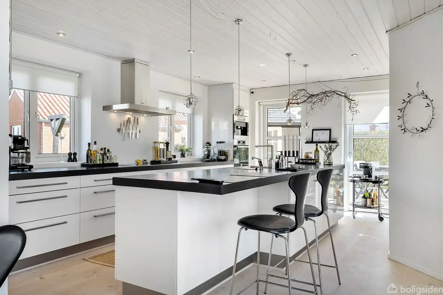 Åbent hus med tilmeldingskrav 2/2 - klik på billede - Velkommen til denne smukke og indflytningsklare villa på Glentevej – et roligt kvarter med lukkede veje og direkte adgang til skolen, så børnene får en tryg skolevej. Området ligger tæt på både fjorden og stranden, som kun er få minutters gang væk, hvilket gør det let at nyde naturen året rundt – og ideelt for morgenbadere. Den charmerende fuldmurede villa ligger i et naturskønt område med kig til fjorden. Med en gennemført, funktionel planløsning er dette hjem oplagt for både børnefamilier og par, der ønsker komfort, kvalitet og en særlig atmosfære. Husets facade fremstår stadig flot, selvom den ikke er blevet opdateret i mere end 30 år – et tydeligt bevis på boligens næsten vedligeholdelsesfrie stand. I stueplan møder du et imponerende køkken-alrum med smukke plankegulve, som skaber en varm og indbydende stemning. Det moderne køkken er indrettet med højglans HTH-inventar og har en stor kogeø, der fungerer som familiens naturlige samlingspunkt. Fra alrummet er der direkte adgang til en sydvendt terrasse, hvor solen kan nydes dagen lang, samt en velanlagt og ugeneret have. Mod øst finder du endnu en terrasse med en charmerende havepavillon – perfekt til rolige stunder. I forlængelse af køkkenet ligger et rummeligt bryggers med god opbevaringsplads. Herfra leder en lys glasbygning videre til den forskudte værelsesafdeling, som rummer to store værelser med direkte udgang til haven samt et disponibelt rum til ekstra opbevaring. Ved entréen finder du desuden et stilrent badeværelse med bruseniche. På første sal, hvor loftet går i kip, åbner en lys og rummelig stue sig op. Her skaber brændeovnen en hyggelig atmosfære – ideel til afslapning og samvær. Det store soveværelse byder på et lækkert walk-in closet og eget badeværelse med bruseniche, så du får en privat og luksuriøs oase. Til ejendommen hører også en dobbelt garage med solceller, som bidrager til et lavt energiforbrug og en mere bæredygtig hverdag. Haven er nydeligt anlagt med flere hyggelige kroge, hvor du kan nyde roen og naturen omkring dig. Beliggenheden på Glentevej 15 er helt ideel. Ud over den korte afstand til fjorden og stranden byder området på alt, hvad hverdagen kræver – herunder pasningstilbud, skole, fritidsaktiviteter og den lokale roklub. Struers bymidte ligger blot en kort cykeltur væk og tilbyder et bredt udvalg af specialbutikker, dagligvarebutikker, kulturliv og spisesteder. Samtidig er der under 20 km til motorvejen, hvilket giver nem pendling til og fra området. Er du på udkig efter en bolig med masser af lys, en fantastisk planløsning og en skøn rumfornemmelse – alt sammen i naturskønne, trygge omgivelser – så bør du opleve Glentevej 15. Her får du et hjem, hvor natur, nærmiljø og moderne komfort går op i en højere enhed.