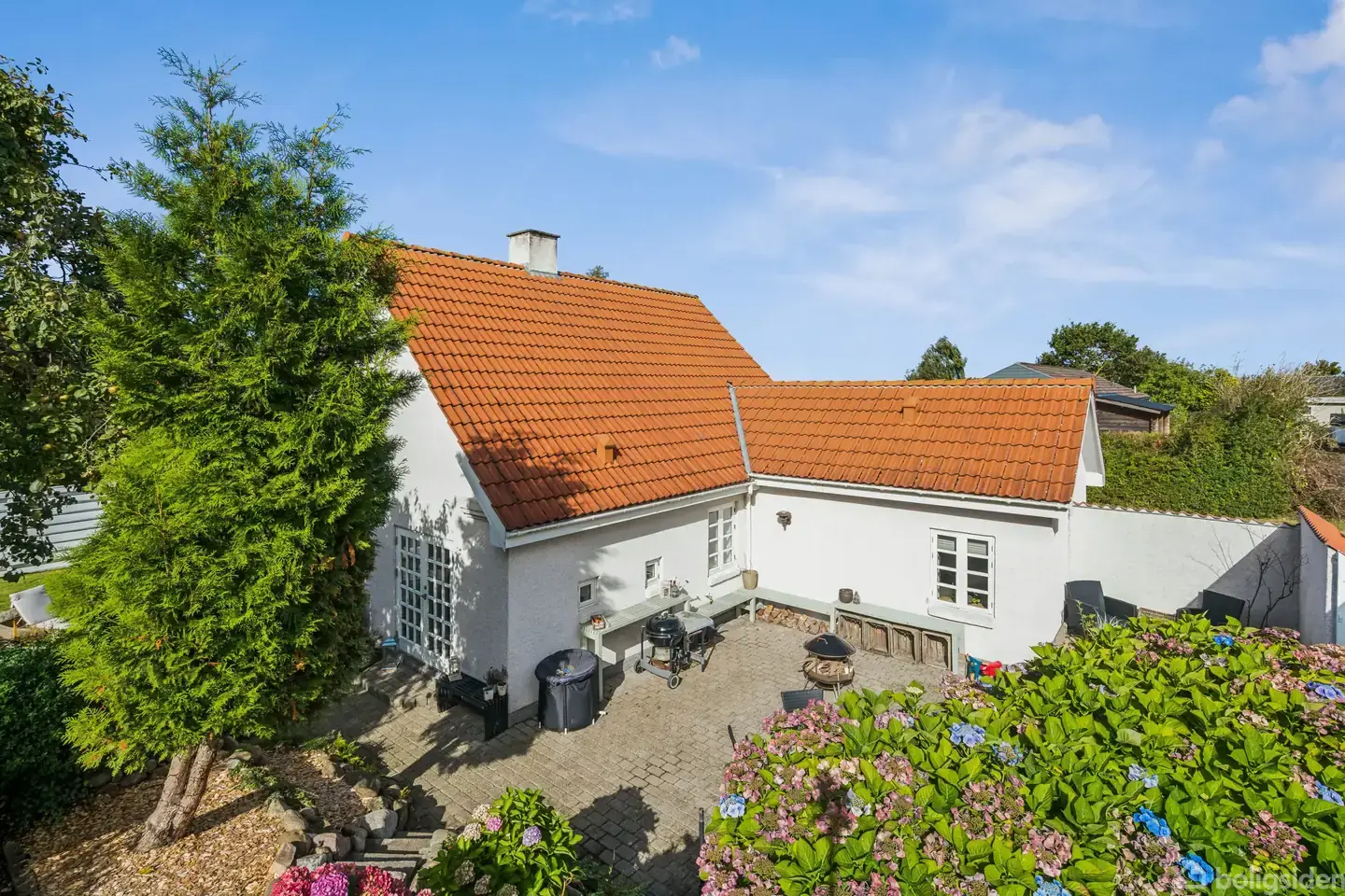 Charmerende villa med romantisk have i FrejlevFlot og indbydende murermestervilla fra 1934 Velbevaret charme forenet med moderne komfort Tre soveværelser med loft til kip og blottede bjælker Lækkert badeværelses- og køkkeninventar En eventyrlig og privat have midt i Frejlev Romantisk stil og moderne praktik mødes i smuk forening i denne velholdte villa fra 1934, og som man går rundt i huset, forstår man let, hvorfor netop murermestervillaens traditionelle og klassiske charme har vundet så stor p
