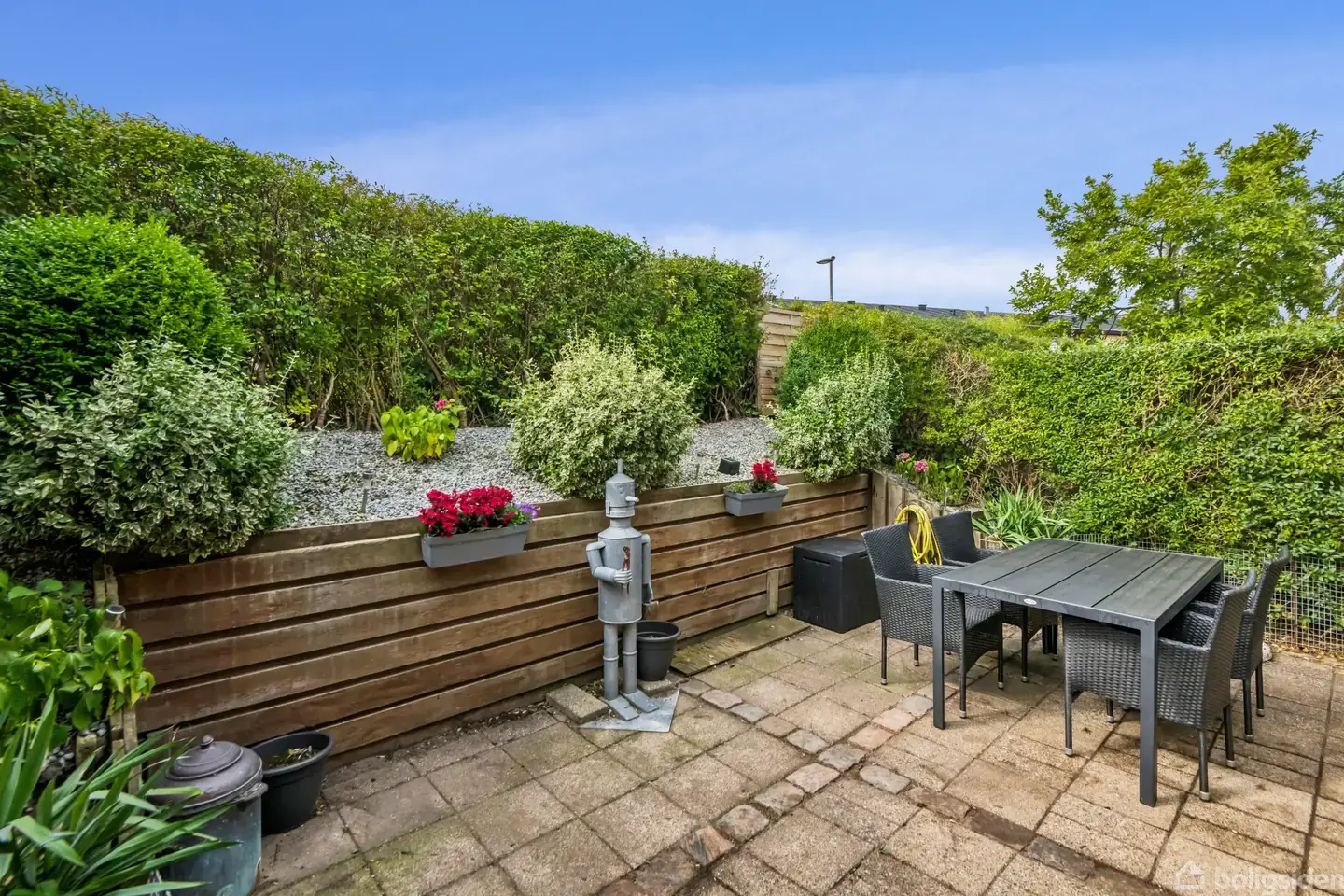 Som taget fra familiens ønskeliste. I det lukkede vejsystem, Godskeren, hvor tilværelsen er tryg og omgivelserne grønne, beder vi jer rette opmærksomheden mod et af kvarterets 144 m2 store rækkehuse. Læs med og forestil jer, hvordan det ville være at bo her på et skønt sted at falde til, et skønt sted at vokse op – ja, kort sagt, et skønt sted! Tryg hverdag i Godskeren. De lukkede veje, der udgør Godskeren, ligger omgivet af grønne arealer, legepladser og kolonihaveidyl – I bosætter jer altså l
