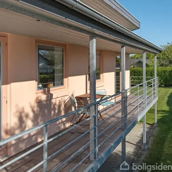Villaen er bygget i 1985 og er løbende opdateret. Der er brugt gode gedigne materialer overalt med vægt på at tilgodese naturlighed, allergivenlighed og energi. Det er et rigtig dansk håndværkerhus i sydlandsk stil med murede skillevægge og indervægge. Der er en enkelt let skillevæg mellem stue og et værelse. Huset er pudset både udvendigt og indvendigt. Udvendigt er malet med med kalkproduktet Skalcem 100. Nyere listetækket tagpaptag med 250 mm isolering. Villaen har ensrettet taghældning og er udnyttet i 3 forskudte plan med 139 m2 bolig + 25 m2 indrettet til hall/entré, samlet opvarmet areal i alt 164 m2. Når du har parkeret i den nyere carport med buet tag, går du lige ind i stor hall/entre, hvorfra der er adgang til funktionelt bryggers med husets tekniske installationer, herunder nyere fjernvarmeanlæg med egen unit. Her er også plads til vaskesøjle med vaskemaskine og tørretumbler. Fra entreen kommer man ind i husets fornemste rum, køkken-alrummet, som er i åben forbindelse med stue. Køkken med direkte udgang til terrasse fra køkken. Alrummet udgør en rigtig fin opholds- og spiseplads med dobbelt terassedør til vestvendt terrasse. Der er grøn udsigt til haven, afstand til nabobebyggelse, og hyggelig udsigt over landsbyen med masser af himmel mod vest. I forlængelse af køkken-alrummet er der adgang til 1 stort værelse. De naturlige overflader og byggestilen giver en yderst behagelig akustik i huset. 5 trin op fra køkken-alrummet til det øvre plan med stue, og i forlængelse af stuen er der adgang 1 stort værelse. Fra stuen og værelset er der udgange til en virkelig skøn og overdækket altangang i hele husets længde. Altangangen er østvendt, og her kan man nyde en kop morgenkaffe i solen - eller søge skygge på varme sommerdage. 5 trin ned fra køkken-alrummet er det nedre plan. Her er en mellemgang med garderobeplads, lækkert badeværelse med stor bruseniche og skabsarrangement med dobbelt håndvask, stort soveværelse med 4 faste skabe. Der er klinkegulve med gulvvarme i hele det nederste plan. I mellemplanet og det øverste plan er der virkelig flot gulvbelægning i form af originalt oliebehandlet fyrretræs-plankegulv. Der er 3 lags termovinduer/døre de fleste steder. Udvendigt er der nyere ståltagrender, galvaniseret altangang med gulv af hårdttræ. Et praktisk redskabsskur. Skøn lukket have med græs, nemme hække og blomstrende buske og løgplanter. Træterrasse mod vest. Villaen er beliggende på lukket og stille villavej. Astrup byder på meget populær friskole, foreningsliv, idrætshal, kirke og forsamlingshus, og fra villaen er der stisystem til skov og natur i gåafstand.