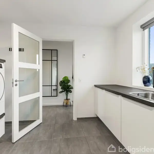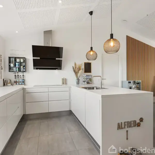 Her får I en moderne og gennemført kvalitetsvilla på Gøgeurtvej 28 i Strandby – et attraktivt område nær strand, vand og det hyggelige havnemiljø. Boligen er opført i 2017, står med energimærke A2015 og byder på hele 167 m² bolig samt en stor, isoleret garage på 64 m² med gulvvarme og dobbelt elport. Alt sammen placeret på en 1.057 m² grund.Indretningen er både funktionel og familievenlig. Centrum i huset er det store, lyse alrum, hvor delvise lydlofter og gipslofter skaber en behagelig akustik