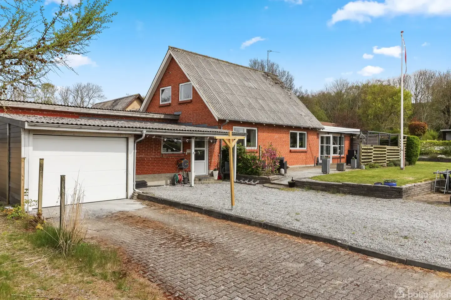 Velkommen til Gøttrupvej 238 – her får du muligheden for at flytte ind i en indbydende og velholdt villa, hvor rammerne emmer af tryghed og hyggelig atmosfære. Allerede ved ankomsten fornemmer du villaens imødekommende udtryk, hvor de flotte murstensfacader og det solide tag straks fanger øjet. Foran huset findes en rummelig garage med varmepumpe – perfekt til både opbevaring og kreative sysler året rundt. Villaen er placeret på en rolig villavej, hvilket skaber et fredeligt miljø, hvor hverda