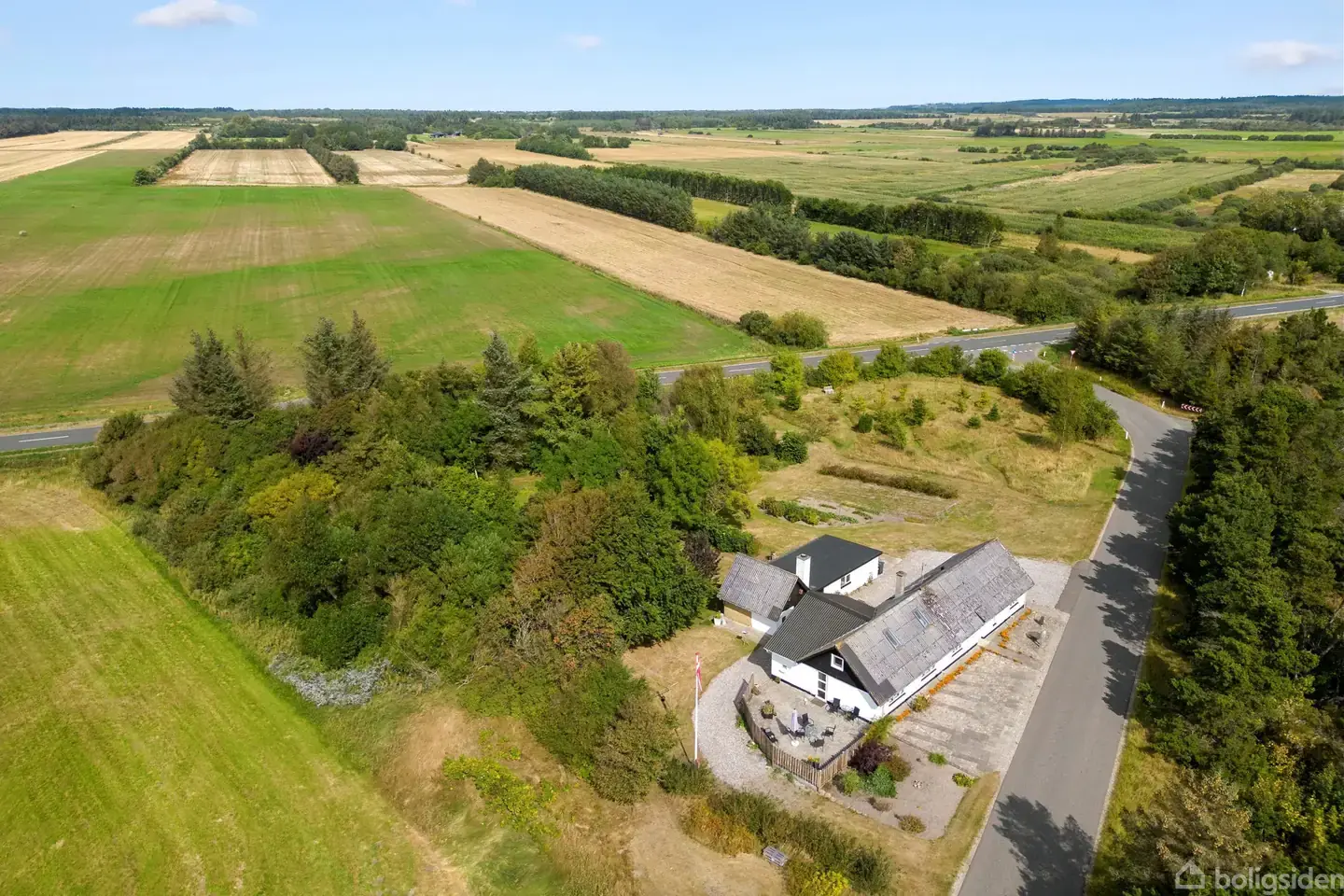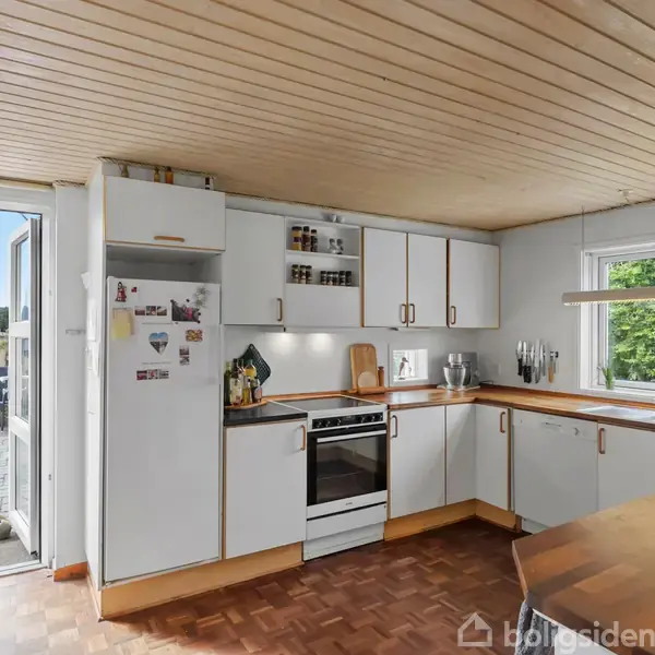 På en naturskøn grund på hele 6.794 m² finder du denne velholdte ejendom, der byder på både charme, god plads og en beliggenhed tæt ved handelsbyen Fjerritslev. Her får du en bolig med masser af atmosfære, en fantastisk have med frugtplantage, gamle smukke træer og højt til himlen. Boligen rummer et lyst og indbydende spisekøkken med charmerende detaljer som f.eks. et smukt stavparket gulv. Ligeledes er der direkte udgang til en sydvestvendt terrasse, hvor sommerens solnedgange kan nydes i rolige omgivelser. Køkkenet ligger i åben forbindelse med en hyggelig stue med synlige bjælker og vinduer fra 2003. Fra stuen er der adgang til et rummeligt og lyst soveværelse ligeledes med synlige bjælker samt to store værelser med pænt flydende gulv – perfekt til børnefamilien eller jer, der ønsker ekstra plads til kontor eller hobby. Badeværelset er fra 2008 og er virkeligt smukt udført med bruseniche, loft til kip og ovenlysvinduer, der giver et flot lysindfald og skøn rumfornemmelse. Dertil kommer en praktisk forgang med gulvvarme samt et godt bryggers med gulvvarme og god plads. Ejendommen rummer desuden en tagetage, hvilket giver endnu bedre plads og mange indretningsmuligheder. Udenfor venter en stor, grøn oase med frugttræer, køkkenhave, gamle træer og masser af plads til både leg og udeliv. Til ejendommen hører desuden udhus med fyrrum samt garage med el-port. Alt i alt en bolig, der kombinerer landlig idyl med praktiske faciliteter – og med kort afstand til Fjerritslevs gode handelsliv, skoler og dagligdagens bekvemmeligheder.