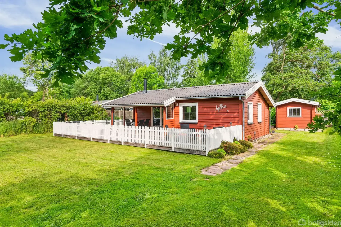 HER SKABES DE DEJLIGSTE FERIEMINDER MIDT MELLEM SKOV OG STRAND På Hornsherreds naturskønne nordspids ligger feriebyen, Kulhuse, og her ligger også jeres nye fristed, hvor I fremover kan lægge hverdagslivet til side og give plads til ren afslapning. I skal til Goldbjergvej 9, hvor et hyggeligt og velholdt fritidshus placerer sig helt perfekt på en lukket sommerhusvej. Her bliver I ét med naturen, for 100 meter i den ene retning møder I skovens dybe, stille ro, og der er ikke meget længere til fjorden, som folder sig ud i modsatte retning. Huset ligger nemlig i 6. række til vandet, så det er fjordens friske brise, der rammer jer hjemme på terrassen. ÆGTE DANSK SOMMERHUSSTEMNING MED ET SVENSK TVIST I overtager et velholdt hus, der kan tages i brug fra dag ét. Som et klassisk, dansk sommerhus står det med en træbeklædt facade, men farven er hentet over sundet, for facaden er malet i den traditionelle svenskrøde. Husets byggeår hedder 1971, så I får sommerhuscharme som taget ud af barndommens minder, men det er samtidig tydeligt, at der er lagt kræfter i diverse opdateringer. Det kan bl.a. nævnes, at vinduer og døre blev udskiftet i 2022, Morsø-brændeovnen er fra 2023, og der blev lagt nye gulve i 2024 og i 2025 er der lavet ny indkørsel. Huset er småt, men rigtig godt. Det er beskedne 46 m2, der venter jer indendørs, men de er udnyttet til fulde, så de føles som flere, og de giver jer alt, hvad I har brug for. En dejlig sommermorgen starter med, at I slår øjnene op på de to fine værelser, hvor dagens første stråler stille og roligt vækker jer, og foruden de to værelser får I også et pænt badeværelse med brus. De fleste kvadratmeter er dog dedikeret til samværet, for de er brugt på et åbent opholdsrum med stue og køkken ud i ét – og dagen lang følger det dejlige sollys jer rundt i huset, så også her i opholdsrummet møder I en lys og venlig atmosfære. Man får med det samme lyst til at slå sig ned med en god bog foran brændeovnen, der suppleres af en varmepumpe, som hurtigt varmer huset op. Året rundt kan I således bruge jeres fristed, når I trænger til et afbræk fra dagligdagen. SLÅ DØREN OP TIL DET DEJLIGE UDELIV I stuen åbner terrassedøren direkte op til en stor, indbydende træterrasse, der byder på både en masse gode soltimer og 11 overdækkede m2, hvor man kan søge skygge eller læ for duggen. Jeres have er hyggeligt anlagt, og mange timer vil flyve afsted i de grønne omgivelser, hvor I kan riste skumfiduser omkring bålfadet eller dyste i petanque på den store græsplæne. Som prikken over i’et finder I også et charmerende anneks i en svenskrød farve, der matcher husets – og annekset rummer både et udhus til haveredskaberne og et rum med en køjeseng til de overnattende gæster. HORNSHERRED: DEN BEDSTE KULISSE FOR FERIERNE Kulhuse ligger kun en time i bil fra København, så huset på Goldbjergvej 9 er et oplagt køb for jer, som drømmer om et fristed til både lange ferier og weekend-getaways – måske skal sommerhuset komplementere en lejlighed i storbyen? Uanset hvad, så vil I straks forelske jer i roen og den fantastiske natur, der møder jer på det nordlige Hornsherred, hvor I er omgivet af vand. Med få skridt til fjorden kan I starte dagen med en frisk dukkert eller bære jeres paddleboards direkte ned til kysten og nyde nogle timer til vands. Naturoplevelserne fortsætter til lands, hvor Nordskov hører til blandt jeres nye naboer, og den store skov imponerer med Danmarks ældste egetræer. I kan også hoppe på cyklerne og lade Fjordstien lede jer mod en is i Jægerspris, og når I tager turen gennem det flotte landskab, støder I på små landevejsboder, der frister med hjemmedyrkede lækkerier. De kan suppleres af større indkøb i brugsen hjemme i Kulhuse. Vi kunne blive ved med den gode fortælling om Hornsherred, Kulhuse og Goldbjergvej 9, men vi vil hellere tage jer med på en fremvisning. Kontakt Freck Bolig allerede i dag.