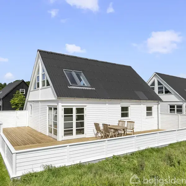Er det din drøm at bruge fridagene på en golfbane? Dette lækre hus i tilknytning til feriecenteret HimmerLand kan blive din hjemlige base, når du vil svinge golfkøllen i naturskønne omgivelser. Der er ingen bopælspligt på denne bolig, så du bestemmer selv om du vil bruge den som helårsbolig eller som fritidsbolig. Der er fra huset gåafstand til feriecenteret HimmerLand via stisystem. Boligen fordeler sig på 106 kvadratmeter i to plan. I stueplan ligger den lyse stue og køkkenet i åben forb