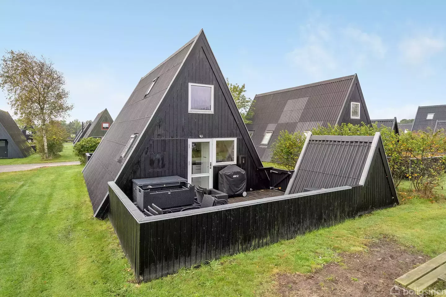 Med adresse her på Golfsvinget 250 har du ikke bare sikret dig et rigtig godt udgangspunkt for mange timer og dage under åben himmel på de flotte huller, som HimmerLand kan tilbyde. På egen matrikel er du i høj grad også sikret indbydende og hyggelige rammer. Huset ligger på en lille stikvej, og det er omgivet af grønt og lidt ekstra plæneplads til den ene side, hvilket giver en god fornemmelse af, at have ekstra plads og luft omkring sig. Resortets mange faciliteter og tilbud byder nu også på n