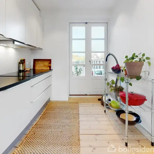 Indflytningsklar på en skøn beliggenhed - kort afstand til C Drømmer I om en tilværelse på en central beliggenhed i stemningsfulde Esbjerg? Så får I her et bud på en fuldstændig nyrenoveret 2-værelseslejlighed, hvor der er tænkt over hver en detalje. I ejendommen Gorms Gaard placerer I jer kort fra byens tilbud. Velkommen til! I tages imod i den lyse fordelingsentré med plads til overtøjet i et smart opbevaringsmøbel, og hvor I rigtig kan lande i hjemmet. Herfra går turen ind i lejlighedens store stue, hvor dagslyset brager ind og sætter prikken over i'et for den gode rumfornemmelse. Indretning af både sofahjørne og spisebordsafdeling er muligt, og rummet er forsynet med spots, til når aftenen falder på. De velholdte, charmerende plankegulve følger med jer rundt i hele lejligheden, og køkkenet er ingen undtagelse. Igen er den lyse indretning og spots med til at sikre skønne rammer for rummet, og I får herlige rammer til madlavningen - her kommer I hverken til at gå ned på skabs- eller bordplads, og I kan nyde morgenkaffen på altanen ud til gården, som I har adgang til fra køkkenet. I lejlighedens værelse følger den lyse indretning med jer, og med en smart DIY-løsning sikres I optimal udnyttelse af pladsen til både garderobe og seng - se selv, hvor elegant nuværende ejer har løst det! Sidst, men bestemt ikke mindst, er lejlighedens lækre badeværelse i klassiske hvide klinker og separat bruseniche. Jeres beliggenhed her i Esbjerg sikrer jer hele hverdagen - og mere til - helt tæt på. Hverdagens indkøb klares en kort gåtur fra hjemmet, ligesom I har Vestjyllands største storcenter Broen og Danmarks længste gågade en lille cykeltur fra hoveddøren. Her venter jer alt fra gode shoppingmuligheder og lokale forretninger til hyggelige spisesteder. I kan desuden nyde gåture i det grønne område på den anden side af vejen samt den hyggelige havn. Book fremvisningen nu!