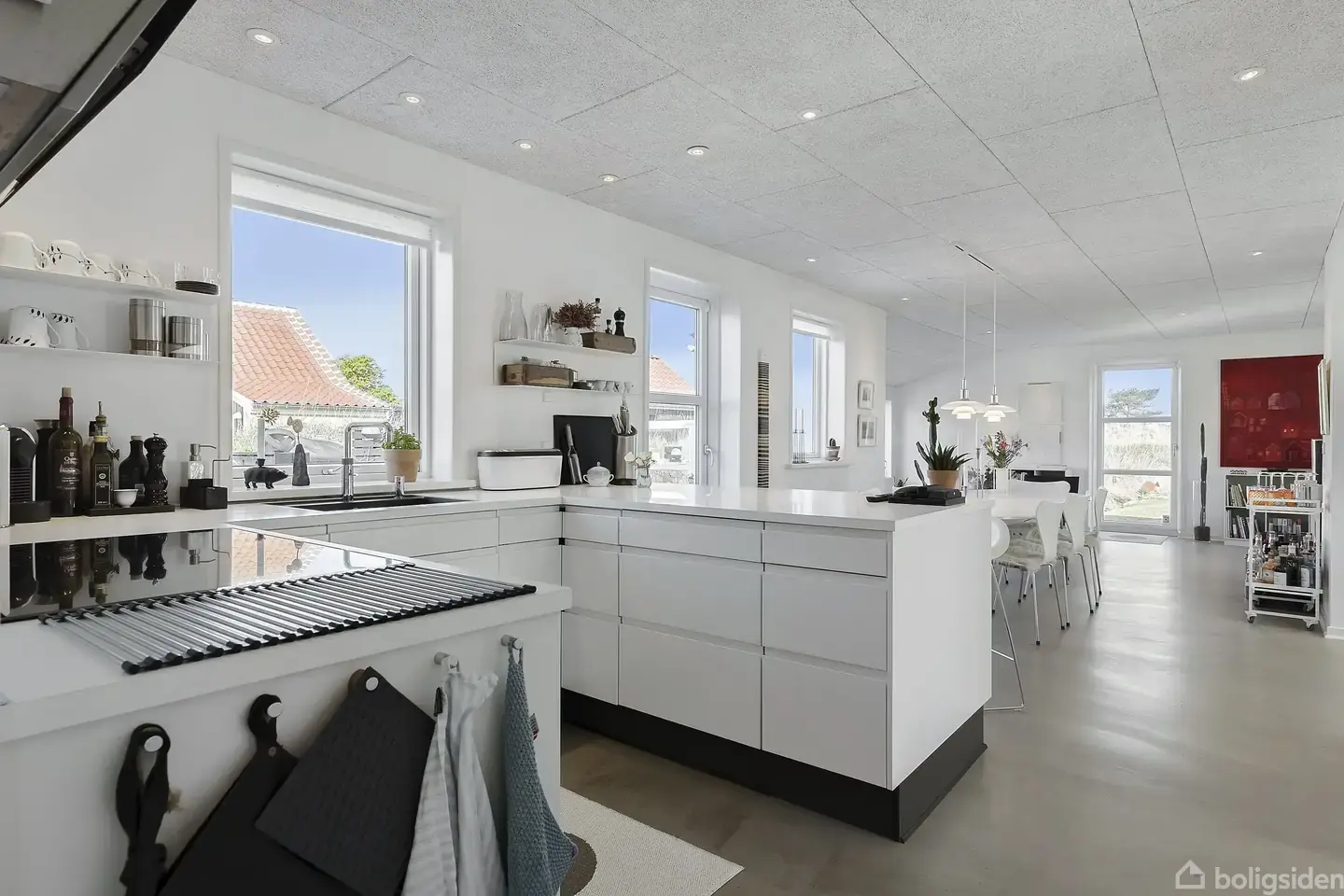 Gråklit 15 – en af områdets bedst placerede ejendomme, hvor klitlandskabet bogstaveligt talt begynder i baghaven. Fra Gråklit har I direkte adgang til åbne klitter og fredet hede, og stierne fører jer mod Damstederne, Den Tilsandede Kirke og det betagende kystlandskab ved Skagens Vesterby.Boligen fremstår gennemgribende moderniseret og emmer af kvalitet. Den hvide, vandskurede facade og det klassiske røde tegltag rammer huset smukt ind i det skagenske landskab. De 153 m² boligareal er indrettet
