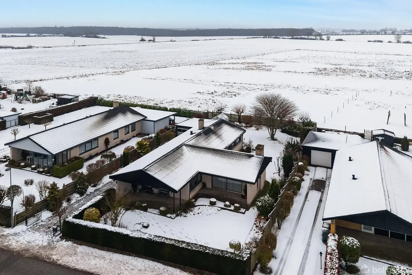 Stor etplans villa med nyere eternittag kun 10 min fra Nykøbing.Stor etplans villa, der kun har haft én ejer!Siden opførelsen af boligen er er der sidenhen lavet en tilbygning, som har gjort stuen en del større. Det giver en fantastisk rummelig stue, med masser af lys og plads til at have flere hyggelige områder i stuen. Det smukke originale parketgulv samler hele stuen og fremstår virkelig vedligeholdt. Hvis du har lyst, er det også en mulighed at åbne køkkenet mere op til et køkken-alrum. Køkk