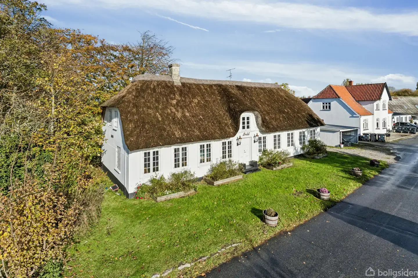 Vi oplever af og til ejendomme, der bare får os til at måbe over den herskabelighed, charme, sjæl og kvalitet, vi mødes af. Det her er én af de få! På Græsvængevej 60 ved Marstal blev vi først og fremmest forelskede i den smukke facade, hvor en hvidpudset ydermur, et tykt stråtag og smukke, sprossede vinduer til sammen skaber et indtryk af den herlighed, man skal opleve indendøre. Indendøre er ejendommen også præget af samme luksuriøse fornemmelse, hvor særligt de store vinduespartiers lysind