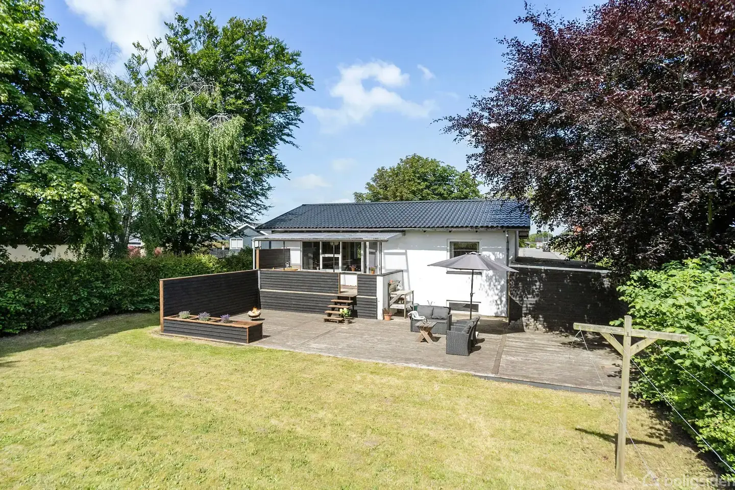 Velindrettede villa på 84 kvm med en god, anvendelig kælder. Her får du en dejlig bolig med plads til både hverdag og hobbyliv – perfekt til parret, den lille familie eller dig, der ønsker ekstra rum og en nem have. Boligen byder på et lyst køkken i åben forbindelse til stuen, hvilket skaber et dejligt samlingspunkt i hjemmet. Fra stuen er der direkte udgang til en overdækket terrasse og den hyggelige, lukkede have – ideel til både afslapning og udeliv året rundt. I stueplan findes desuden stort badeværelse med gulvvarme. Boligen rummer desuden to gode værelser med fleksible indretningsmuligheder. Kælderen er et ekstra aktiv med et badeværelse, bryggers samt tre disponible rum, der kan bruges til alt fra hjemmekontor, opbevaring eller hobbyrum. Her bor du tæt på både indkøb, skole og grønne områder – og med nem adgang til byens øvrige faciliteter. Der er desuden kort afstand til offentlig transport som bus og tog. Til huset hører god garage med værksted. En funktionel og velbeliggende bolig med mange muligheder – kontakt os for en fremvisning!
