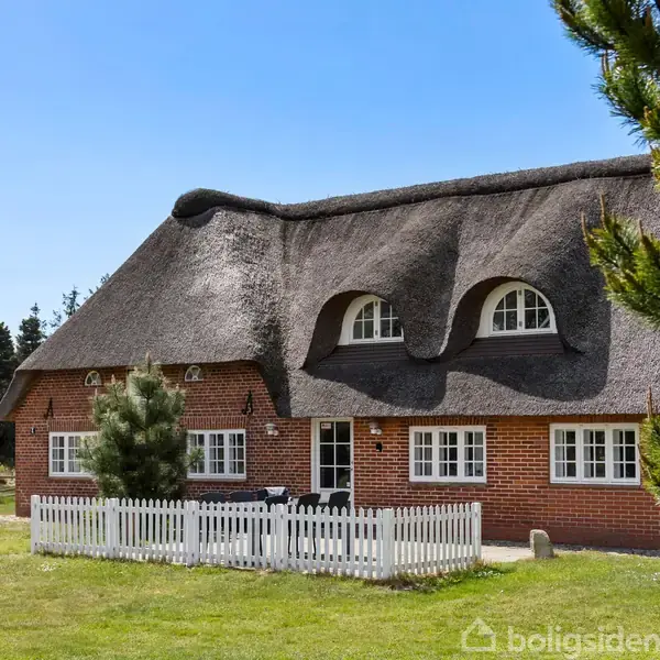 Åbent hus med tilmeldingskrav 2/2 - klik på billede - En gennemrenoveret ældre Rømø-ejendom med tilhørende ca. 5,4 HA jord fordelt på 2 matrikler. Jordtilliggendet, som blev fredet i 2002 som en del af Vesterhede-fredningen, udgøres primært af "ægte-Rømø-natur" bestående af forskellige græsarter blandet med hede arealer med bl.a. en vegetation af lyng. På den store matrikel er der opført to bygninger. Hovedhuset med et bebygget areal på 176 m² - heraf en udestue på 10 m². Boligareallet på 1. sal er 53 m². I alt er der et boligareal på 221 m². Huset er højtliggende og iflg. dingeo.dk ligger huset 6,2 m over havet. Grundvandsdybden ligeledes iflg. dingeo.dk er 0.8 m til 3.3 m. Det første hus på matriklen er dateret tilbage til omkring år 1710, hvilket fremgår af Bert Kelms bogserie "Rømø - et vesterhavspræget samfund", Ejendommen har bl.a. indtil 1975 været bolig for øens senest praktiserende jordemor. Sælger købte ejendommen i 2020 og har gennemrenoveret huset fra 2020 til 2023. Der er bl.a. udført følgende: Nyt stråtag, 300 mm. isolering i skrålofter, overvejende nye skillevægge fortrinsvis udført i gips, nye akustiklofter, ny gulvbelægning, nyt inventar i køkken (en nyfortolkning af et gammeldags rammekøkken) og badeværelser og en ny luft til vand varmepumpe med tilhørende varmeinstallation. Huset sælges med al indbo og løsøre, som også er nyanskaffet. Følgende er bl.a. ikke berørt/omfattet af renoveringen: Teglstensfacader med sprossevinduer, indvendige døre herunder den flot dekorerede dobbeltdør mellem spise- opholdsafdeling. Hovedhuset består i stueplan af entré/garderobe med vinylgulv og trappe til 1. sal, bryggers med flisegulv, badeværelse med fliser på gulv + vægge i brusehjørnet og væghængt toilet, soveværelse med dobbeltseng og vinylgulv. Køkken/alrum med lofter til kip. I køkkendelen vinylgulv og i spiseafdelingen vinylgulv. Fra spiseafdelingen indgang til opholdsstuen med lofter til kip, trægulv og brændeovn. Fra stuen udgang til udestuen med flisegulv. 2 soveværelser med hver en dobbeltseng og trægulv og et toilet. 1. sal er indrettet med badeværelse med linoleumsgulv, væghængt toilet , et bruserum med to bruser og fliser på væggene. 2 soveværelser med hver en dobbeltseng og vinylgulve. Integreret i huset et depotrum med varmeteknikken. Til huset hører også en vestvendt ugeneret beliggende flisebelagt terrasse samt en østvendt delvis afskærmet flisebelagt terrasse. På vestsiden er huset omgivet af høj træbevoksning, hvor du også kan opholde dig ugeneret. Huset opvarmes med el - herunder en luft til vand varmepumpe. Som supplement en brændeovn. Der er gulvvarme i bryggers, badeværelse og toilet i stueplan. Huset er tilmeldt udlejning i 2026 gennem Feriepartner Rømø med reg. nr. 0208. Lejeindtægten i 2024 var kr. 190.221,- + forbrug. Lejeindtægten i 2025 var kr. 198.868,- + forbrug. Huset kan benyttes både som helårsbolig og fritidshus.