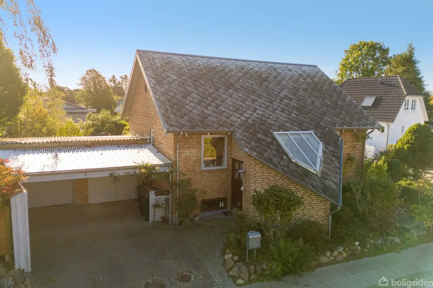 Åbent hus med tilmeldingskrav 18/2 - klik på billede - Villaen er opført i 1951 på 88 m² bolig + 88 m² god kælder. Huset opført i gule sten med skiffer eternittag og hvide trævinduer. Boligen opvarmes med naturgas og luft/luft varmepumpe. Huset er indrettet med god entre i tilbygning, Herfra kommer man direkte ind i det store køkken/alrum med lyst inventar og mulighed for stort spisebord. Alrummet er i åben forbindelse til stuen, herfra er der udgang til terrassen, som er delvist overdækket, og den dejlige have. I stueplan er der også et godt værelse og badeværelse med brus. Kælderen er med egen udgang og indrettet med 4 disponible rum, stort godt bryggers med plads til vaskemaskine og tørretumbler, badeværelse med brus og badekar. Villaen er beliggende på 628 m² grund, som er fint anlagt med have og god terrasse som er delvist overdækket. Til huset er der fin garage.
