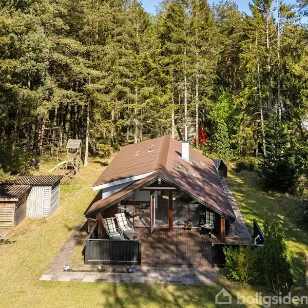 Dette charmerende sommerhus byder på nordjysk natur i særklasse, da grunden ligger i et frodigt område midt inde i skoven og med kun 500 meter til stranden. Sommerhuset ligger på en stor ugeneret grund på hele 2.494 m2. Her er der rig mulighed for, at opleve det gode dyreliv omkring sig.På ca. 5 minutter kan man til fods nå til vandkanten og hvis man vil ud til en helt fantastisk sandstrand, så ligger Øster Hurup blot en lille køretur væk. Her er et skønt havnemiljø, et ishus til når man skal kø