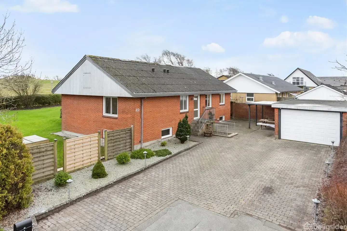 Åbent hus med tilmeldingskrav 3/2 - klik på billede - På Grandalsvej 49 i Tilsted finder I denne attraktive bolig, som er ideelt placeret på en blind stikvej – roligt, trygt og med naturen helt tæt på. Mod syd har huset frit udsyn til åbne marker, hvilket giver en skøn fornemmelse af luft, lys og privatliv, samtidig med at den sydvendte have indbyder til mange gode timer i solen. Beliggenheden er særdeles familievenlig med direkte adgang til cykelsti, som fører sikkert og nemt mod både skole og børnehave – perfekt til hverdagen for børnefamilien. Boligen er opført i to plan og fremstår velindrettet med god plads til både fælles samvær og privatliv. I stueplan bydes man velkommen i et nyt og flot køkken/alrum, som ligger i åben forbindelse med stuen. Her er der et dejligt lysindfald og direkte udgang til den sydvendte terrasse, hvor udelivet kan nydes fra forår til efterår. Derudover rummer stueplan to gode værelser samt et badeværelse. Underetagen byder på tre disponible rum, som med fordel kan anvendes som teenageværelser, hobbyrum eller hjemmekontor. Her findes også et flot badeværelse samt et rummeligt bryggers med god plads til både vaskefaciliteter og opbevaring. Derudover er huset udstyret med solceller monteret på taget, hvilket bidrager til et lavere energiforbrug og en mere bæredygtig hverdag. Til ejendommen hører også en praktisk garage med el-port, som giver nem og bekvem adgang samt gode muligheder for både parkering og opbevaring. Alt i alt er der tale om en velbeliggende og funktionel bolig i et attraktivt område i Tilsted – perfekt til familien, der ønsker trygge omgivelser, naturudsigt og nem adgang til hverdagens faciliteter.