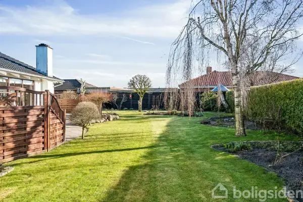 Velkommen til denne charmerende villa fra 1981, der med sin varme atmosfære og indbydende indretning er den perfekte ramme for livets øjeblikke. Med 157 kvadratmeter bolig og 730 kvadratmeter grund har dette hjem masser af plads til både samvær og privatliv. Når du træder ind i stuen, strømmer det varme lys ind gennem de store vinduer, hvilket skaber en lys og luftig stemning. Loftshøjden giver rummet en dejlig rummelighed. Den åbne planløsning mellem stuen og køkkenet muliggør, at familien kan