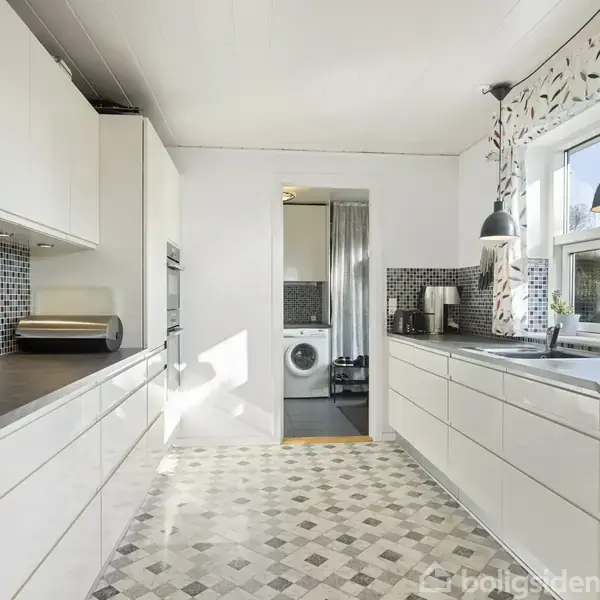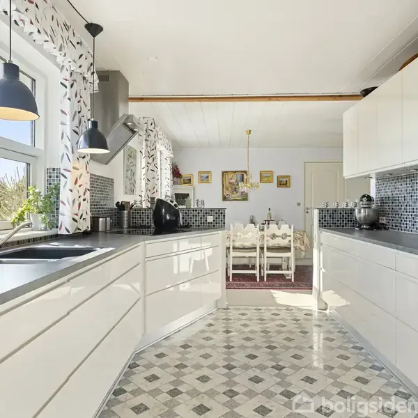 Oplev en indbydende villa på 136 m² med store vinduer og et lyst, åbent miljø.