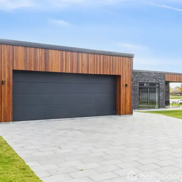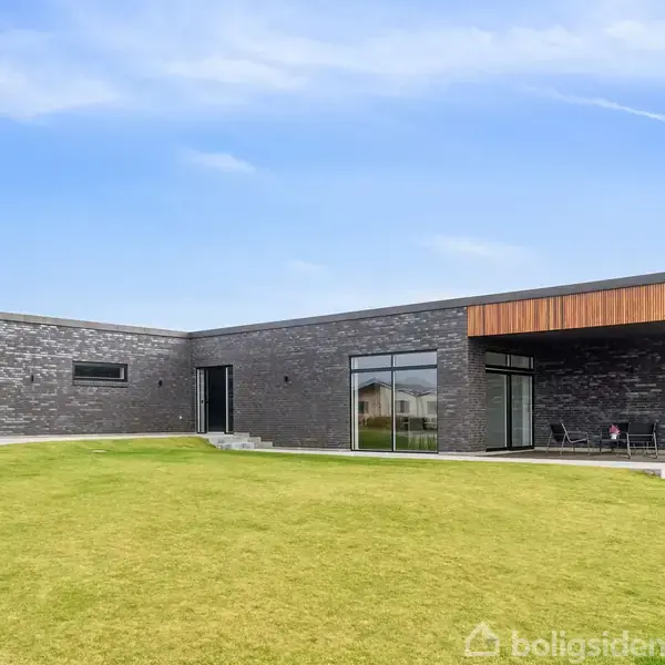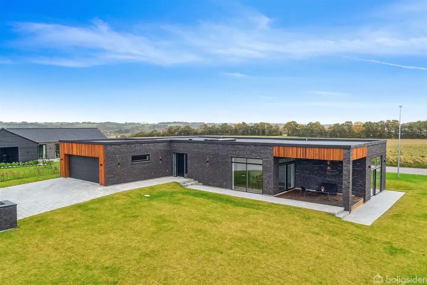 Åbent hus med tilmeldingskrav 17/3 - klik på billede - Velkommen til Graversens Minde 2 – en moderne og indflytningsklar etplansvilla med integreret garage og en planløsning, der er skabt til hverdagen. Her får du 180 m² bolig på en 876 m² grund – fordelt på 5 rum og med to badeværelser. Her bydes man velkommen i en pæn entré med god plads til overtøj og sko, og herfra ledes man naturligt videre til både boligens forskellige rum. Bryggerset er indrettet med bord-/skabsplads og vask samt plads til vaskefaciliteter – en funktionel løsning til hverdagens logistik. Husets hjerte er det store køkken/alrum, hvor lyset strømmer ind fra både ovenlys og de markante vinduespartier. Køkkenet fremstår stilrent med køkkenø, god opbevaringsplads og et gennemført udtryk – og der er naturlig plads til både spiseafdeling og samvær. Fra køkken/alrummet er der direkte udgang til den overdækkede terrasse, som forlænger udesæsonen og gør det let at flytte hverdagen ud, når vejret tillader det. Den separate stue giver en ekstra opholdszone til afslapning, tv-hygge eller gæster – stadig med et flot lysindfald og god indretningsfrihed. Værelsesafdelingen rummer tre regulære værelser samt et walk-in closet. Boligen fuldendes af to badeværelser med stilfuldt moderne udtryk. Udendørs får du en enkel og overskuelig have med god plads til leg, ophold og egne idéer. Den overdækkede terrasse ligger i naturlig forlængelse af opholdsmiljøet, og den integrerede garage giver både plads til bil(er) og opbevaring – med praktisk adgang via boligen. Beliggenheden i Lund giver en rolig base tæt på Horsens, hvor du samtidig har hverdagsfaciliteter inden for overskuelig rækkevidde – herunder skole, indkøb og nem adgang til de større veje.