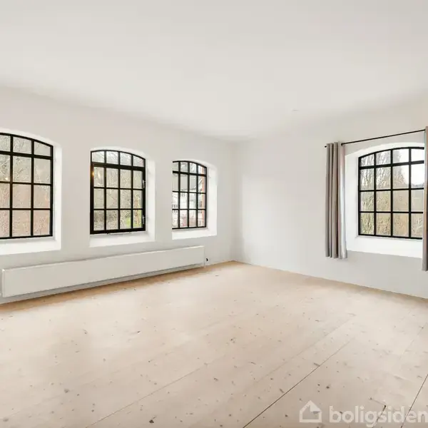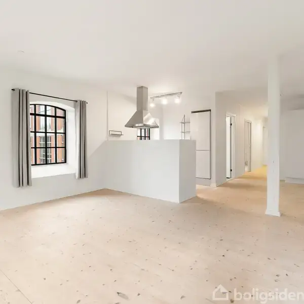 Her bliver du præsenteret for en 2-værelses ejerlejlighed i en tidligere fabriksbygning, hvor industrielt udtryk og moderne komfort går hånd i hånd i en rolig atmosfære. De klassiske, buede sprossevinduer og de lyse overflader skaber en harmonisk helhed, som går igen i hele boligen. Planløsningen er enkel og gennemtænkt, hvor indretningen er holdt i et rent udtryk, som gør det let at sætte dit eget præg. Soveværelset ligger tilbagetrukket fra opholdsmiljøet, så overgangen mellem privatliv og d