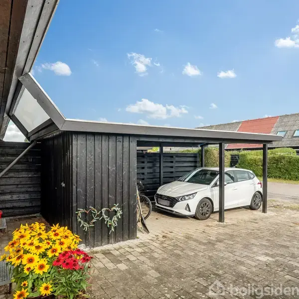 På en rolig villavej i et børnevenligt kvarter i Holstebro finder du dette indbydende rækkehus, der med sin funktionelle planløsning, fine udearealer og carport byder sig til som en oplagt base for både den lille familie, det unge par eller dig, der ønsker en overskuelig bolig i gode omgivelser. Huset er opført i 1977 i klassiske materialer med gule mursten og stærkt eternit tag, og ankomsten sker via en privat indkørsel med egen carport og integreret redskabsrum – praktisk og bekvemt i hverdage