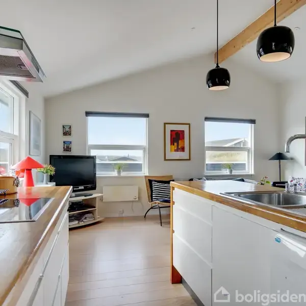 Velkommen til Grindevej 23, et idyllisk sommerhus beliggende helt ude ved Vesterhavet og omfavnet af klitterne. Denne fantastiske beliggenhed mellem Løkken og Lønstrup tilbyder en enestående kombination af naturskønhed og nærhed til lokale faciliteter og aktiviteter for hele familien. Sommerhuset præsenterer sig med lyse, indbydende rum og en imødekommende atmosfære. Den gennemtænkte planløsning byder på en lys entré med store vinduespartier, der elegant opdeler huset i to afdelinger. Husets å