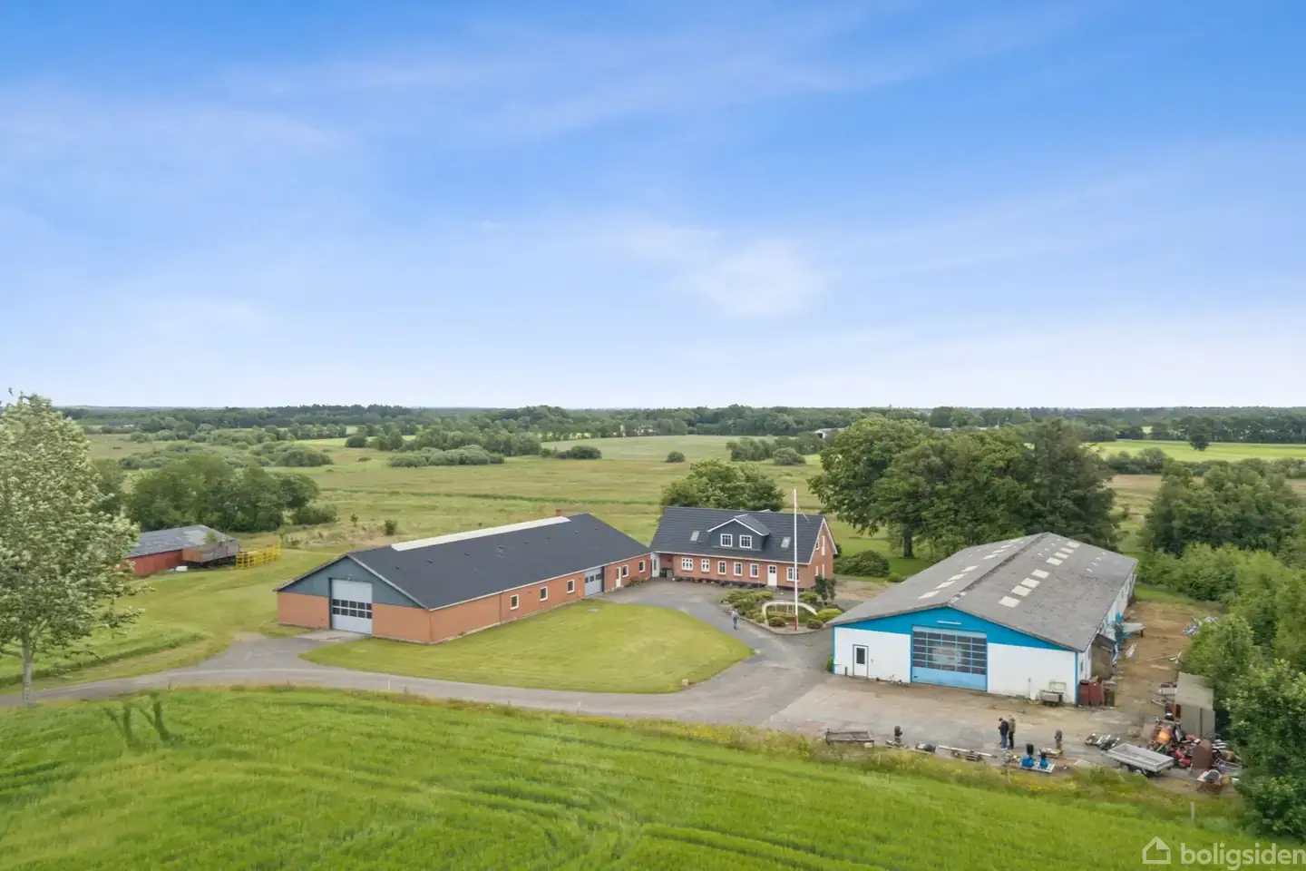 Udsigt over eng og Grindsted Å og kun ca. 4 km fra Grindsted Centrum. Unik ejendom omgivet af dejlig natur med et flot stuehus og to gode erhvervsbygninger på henholdsvis 593 og 709 kvm., der har været benyttet til smedeforretning og lager. Bygningerne er i god stand og er velegnet til mange formål. Ejendommens stuehus er opført i 1902 og er løbende ajourført. Stuehuset har i 2009 fået nyt halvengoberet tegltag med kviste. Første sal er ubenyttet, og stuehusets boligareal ligger dermed i et plan med et registreret bebygget areal på 141 kvm. Der er mulighed for at udvide boligarealet ved udnyttelse af første sal, hvor der er registreret et areal på 60 kvm, hvoraf de 30 kvm. er registreret som beboelse. Ejendommens jordtilliggende udgør ca. 9,3 ha, der primært består af græs- og engarealer med udsigt over Grindsted Å. Fra hovedejendommen er der ca. 4 km cykelsti til Grindsted, hvor I bl.a. finder børnepasning og skole tillige med dagligvarebutikker, tøjbutikker og det store idræts- og kulturcenter Magion. På godt 40 minutter er man i Vejle eller Esbjerg, hvor der er et aktivt erhvervsliv, et stort udvalg af videregående uddannelser og et væld af restauranter og kulturtilbud.
