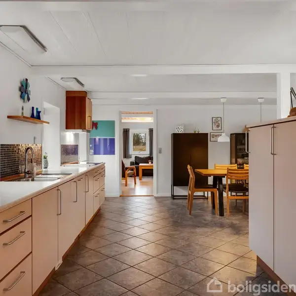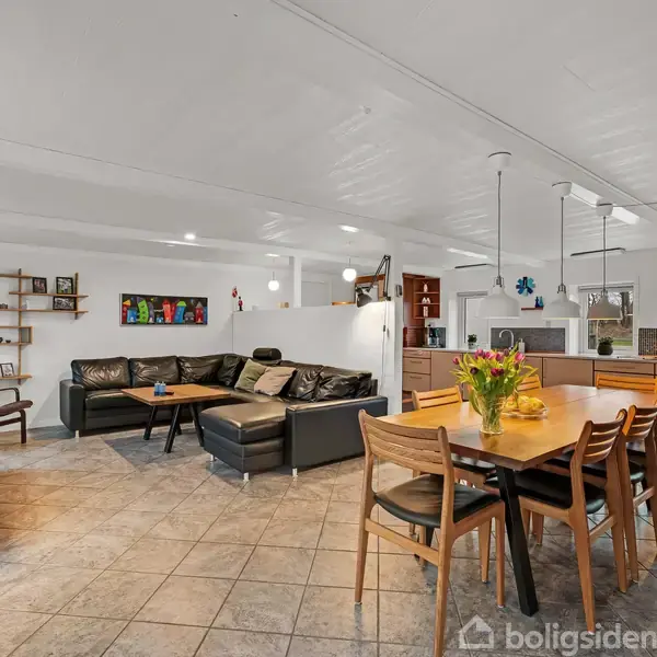 Velkommen til Grisbækvej 9 - en overskuelig og funktionel bolig med gode udbygninger. Boligen byder velkommen i en éntre, som giver adgang til huset lyse og indbydende køkkenalrum med åben forbindelse til stuen, som har udgang til den overdækket terrasse. I forlængelse med entreen findes det flotte badeværelse med gulvvarme.Boligen rummer 2 store værelser, perfekt som soveværelse, kontor eller lignende. Til højre for entreen finder du et praktisk vaskerum/bryggers med videre adgang til et stort