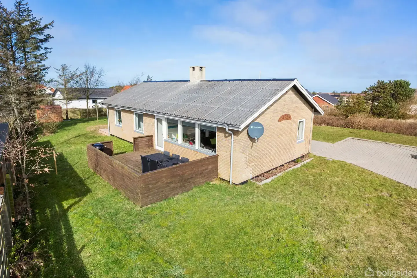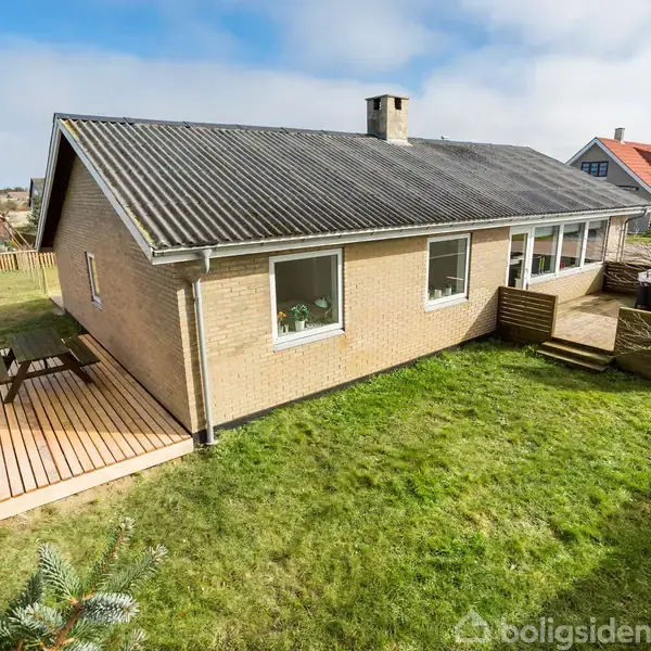 Åbent hus med tilmeldingskrav 11/2 - klik på billede - Velindrettet, indflytningsklar og centralt beliggende villa/fritidshus med gode solterrasser og en nem grund med flisebelagt indkørsel med gode parkeringsforhold – Her er ingen bopælspligt! Benyttes i dag som sommerhus til 6 personer og er tilmeldt udlejning via Feriepartner. Centralt beliggende i rolige omgivelser op til stort åbent areal med sti til stranden. Her er godt 500 meter til indkøb og kun 1 km til Vesterhavet, hvor du har rig mulighed for at benytte Vesterhavets fantastiske muligheder for at fiske, bade, surfing, kitesurfing, paddleboard og meget mere. Vorupør er en charmerende ferieby, hvor du finder restauranter, små hyggelige butikker, fiskehandler ligesom du stadig kan være heldig og købe friskfanget fisk direkte ved bådene Huset er indrettet med en lys entre med klinkegulv og adgang til bryggers/mellemgang, som er indrettet med vaskefaciliteter og mørke klinker. Indbydende køkken/alrum med pæne, velholdte elementer. Alrummet er i åben forbindelse med den lyse opholdsstue - De gennemgående lofter og gulve binder de 2 rum pænt sammen og giver en god rumfølelse. Opholdsstuen er indrettet med brændeovn, et dejligt lysindfald og udgang til syd/vestvendt træterrasse med læhegn. Huset byder endvidere på et lyst badeværelse med brusehjørne og hvide elementer samt 3 lyse værelser, som alle er indrettet med lyse gulve og hvidmalede vægge og lofter. 2 af værelserne har faste skabe.