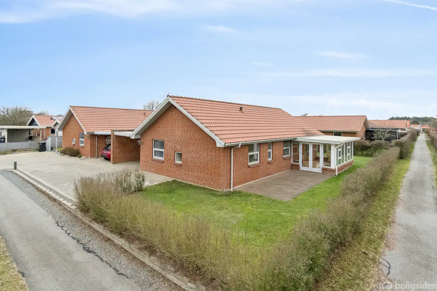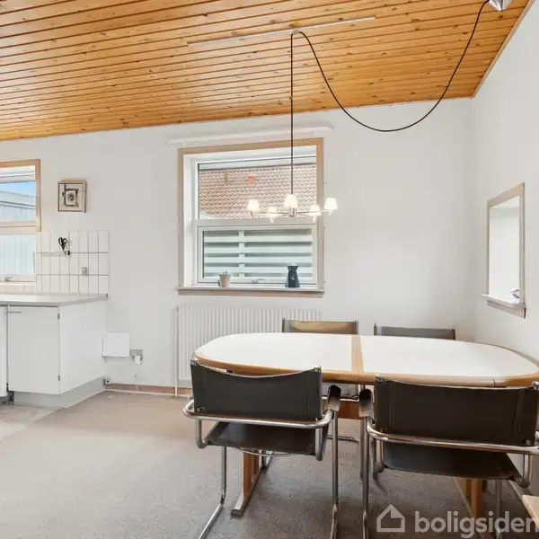 Velholdt hus i populært villakvarterHer får I en gedigen og veldisponeret villa, der ligger trygt placeret i et af Ringkøbings rolige og børnevenlige kvarterer. Boligen er opført i ét plan og udmærker sig ved en funktionel planløsning, der gør hverdagen både nem og overskuelig. Det er et hjem, hvor kvadratmeterne er udnyttet optimalt, og hvor I straks vil føle jer velkomne i de lyse rammer. Hjemmets centrum er det åbne køkken-alrum. Rummet flyder naturligt sammen med stuen, hvilket skaber en le