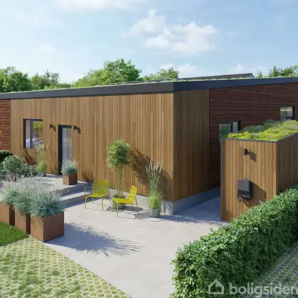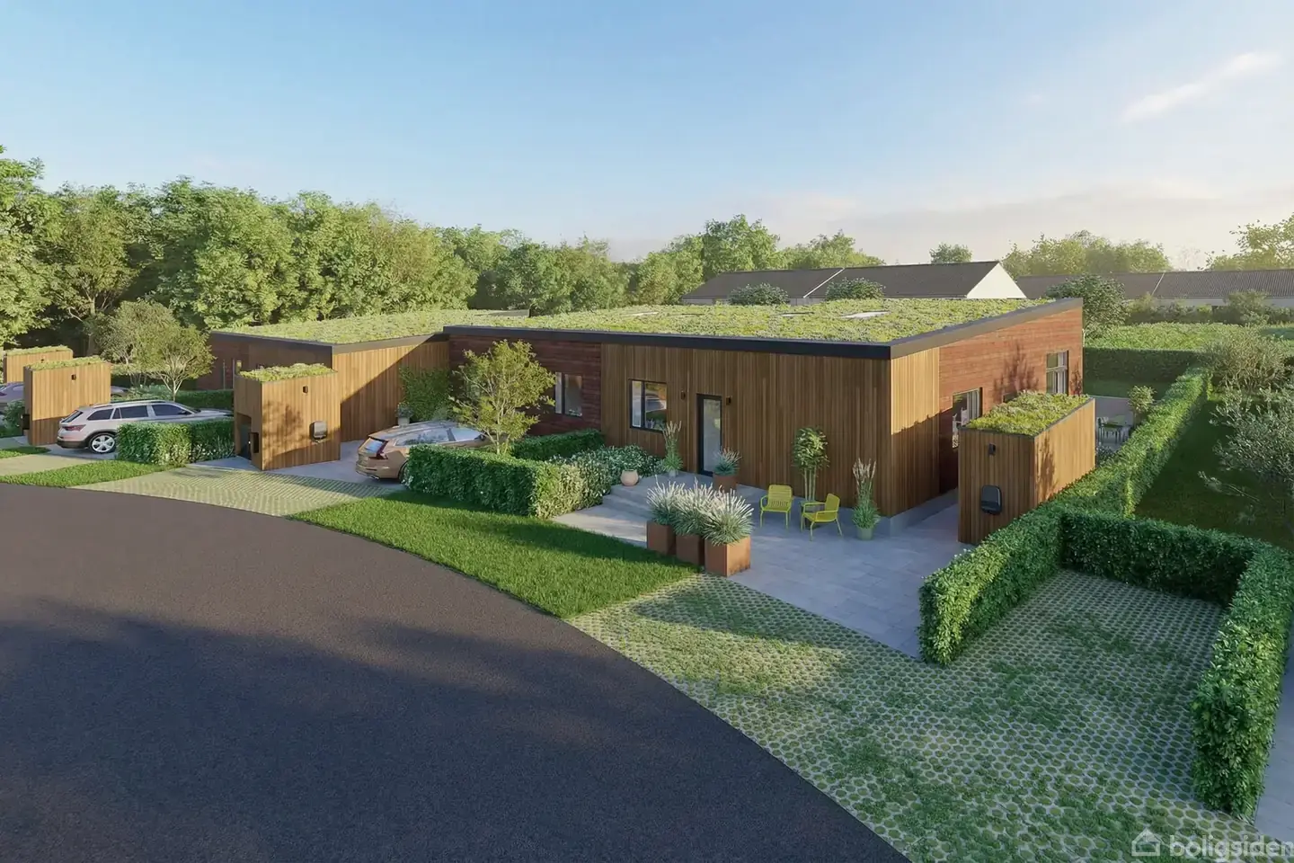 Grønnedal 9D er et rummeligt enderækkehus i ét plan på ca. 141 m² brutto med tilhørende skur på ca. 7 m². Som endebolig får 9D en ekstra rumlighed og lysindfald, samtidig med at den ligger i de samme rolige, grønne rammer som de øvrige boliger i Grønnedal – tæt på Svendborg Sund, Troense og området omkring Valdemar Slot. Boligen opføres i et moderne, energieffektivt byggesystem med højisolerende trækonstruktion, ensidig tagflade med tagpap og sedumtag samt facader i tegl og vulkanske stenplader.