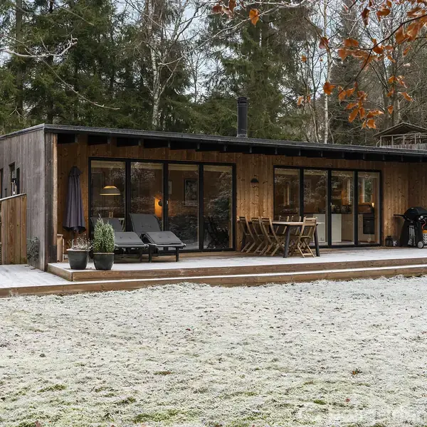 Arkitekttegnet fritidshus i naturskønne omgivelser nær skov, sø og strand