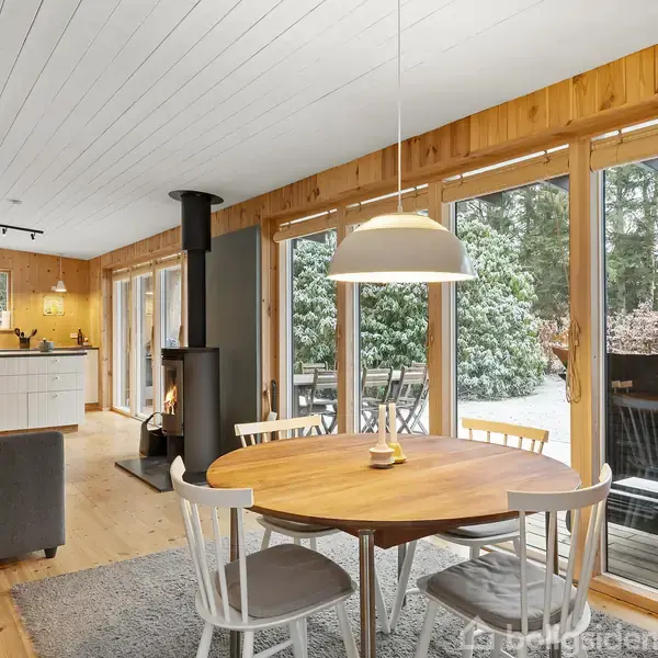 På Grønnevej 14 i Frederiksværk venter en sjælden chance for at erhverve et arkitekttegnet fritidshus, hvor kvalitet og sans for detaljer straks mærkes. Skandinavisk minimalisme og klassisk sommerhusstemning går her hånd i hånd, og naturlige materialer på både facader og interiør skaber en varm og indbydende atmosfære. Huset ligger smukt omkranset af høje træer, som sikrer privatliv og underbygger oplevelsen af at være omgivet af natur.Boligens store opholdsrum med køkken-alrum udmærker sig med