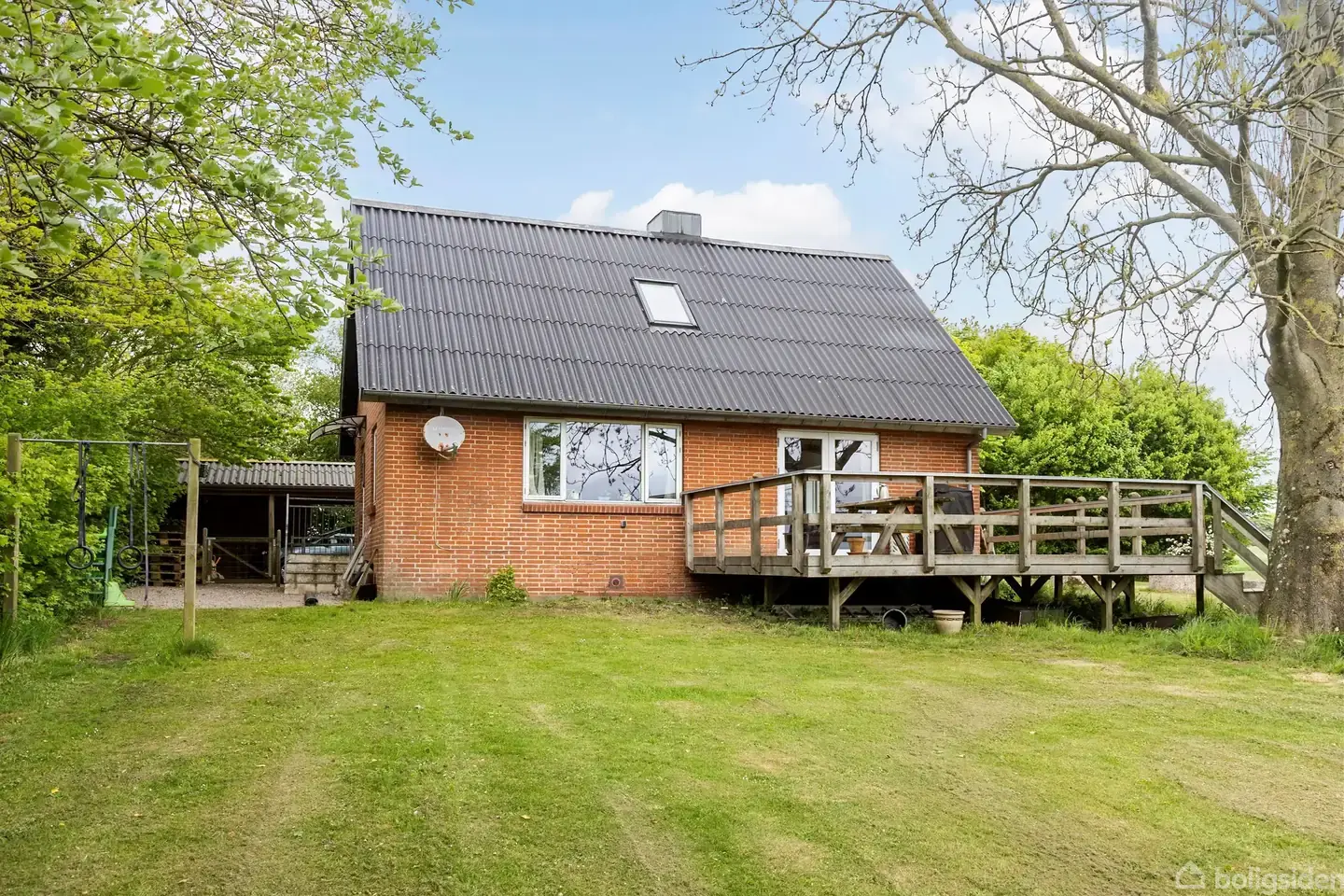 Åbent hus med tilmeldingskrav 3/2 - klik på billede - Hyggeligt hus på landet - op til åbne marker Velkommen til Grønning Kirkevej 2, et charmerende hus på landet tæt ved Grønning, hvor drømmen om det perfekte hjem bliver til virkelighed. Dette solide rødstenshus bygget i 1960, byder på 116 m² veludnyttede kvadratmeter, der er ideelle for både familier med børn og singler, der ønsker plads til at udfolde sig. Når du træder ind i boligen, mødes du af et lyst og indbydende køkkenalrum, der flyder sammen med stuen i en harmonisk åben planløsning. Her kan du nyde samværet med familie og venner, mens du tilbereder lækre måltider med de nyere hårde hvidevarer, der gør madlavningen til en leg. Fra køkken/alrummet er der trappe til 1. sal. Der er gulvvarme i 3 rum i stueplan - nemlig i stuen, soveværelset og badeværelset - ellers sker opvarmning fra radiatorer i de øvrige rum. I stueplan er der ellers: Entre med trappe til kælderen. Sydvendt soveværelse. Lyst badeværelse med flisegulv, gulvvarme, toilet, vask i bordarrangement og muret bruseniche med fliser på gulv og vægge. 1. salen er indrettet med stor opgang med mange muligheder og synlige hanebånd. Derudover er der indrettet et værelse. Kælderen er med fyrrum med pillefyr + teknikrum med vandvarme. Der er også et fint vaskerum med plads til vaskemaskine og tørretumbler, samt direkte udgang til haven. Fra stuen er der direkte adgang til en dejlig sydvendt træterrasse, hvor solen stråler kan nydes hele dagen. Forestil dig at tilbringe lange sommeraftener her, omgivet af den frodige have, der prydes af store, majestætiske træer og grænser op til åbne marker. Det er et perfekt sted for børn at lege og for voksne at slappe af med en god bog. Huset er med nyere bølgeeternittag (fra 2015). Til huset hører en carport på ialt 26 m², heraf skur/værksted på 5 m². Grønning Kirkevej 2 er mere end bare en bolig; det er et hjem, hvor minder skabes, og livets små glæder udfolder sig. Kom og oplev denne perle, der venter på at byde dig velkommen!
