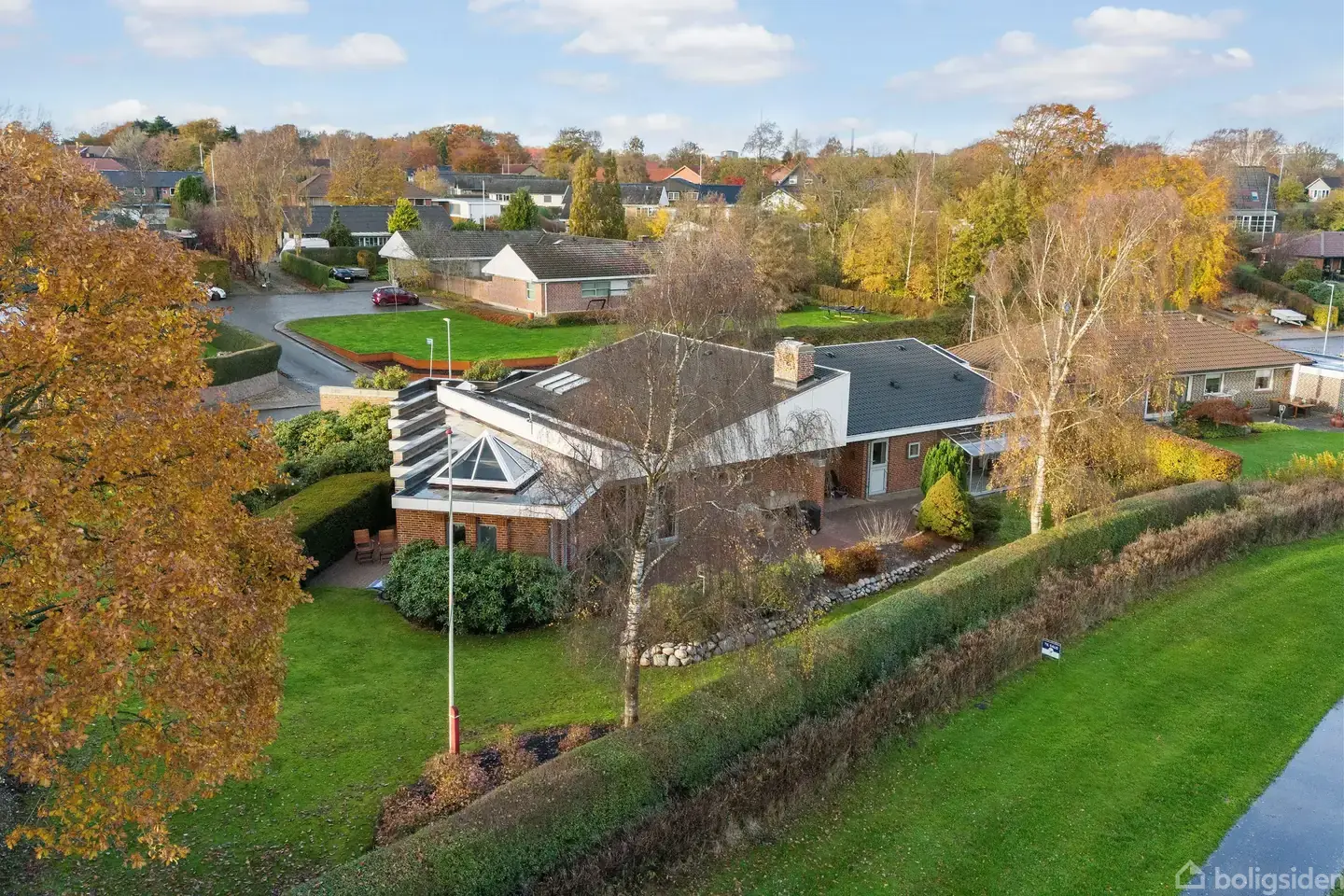 Åbent hus med tilmeldingskrav 3/2 - klik på billede - Arkitekttegnet villa med søudsigt og tidløs kvalitet – et hjem i særklasse Der findes huse, som man straks fornemmer er noget ganske særligt – og Grønningen 10 er ét af dem. Her får du en arkitekttegnet perle, hvor kvalitet, lys og gennemtænkt indretning går hånd i hånd. Huset er opført af Brdr. Sørensen, et navn der dengang – og stadig i dag – er synonym med solidt håndværk og langtidsholdbar kvalitet. Beliggenheden taler for sig selv. Ejendommen ligger med en fantastisk udsigt over de grønne arealer og søen i Ølgod. Her får du naturens ro – i udkanten af byen, men stadig med alt inden for rækkevidde. Boligen byder på hele 232 m² i ét plan, og her er virkelig ikke spildt en eneste kvadratmeter. Det store køkken-alrum er hjemmets hjerte, et lyst og rummeligt samlingspunkt med masser af plads til både hverdag og gæster. Fra alrummet træder du et trin ned i den nedsænkede stue, hvor pejsen og det flotte lysindfald skaber en stemning, som man kun kan blive glad af. I forlængelse af stuen ligger en skøn vinterstue, der med sin varme og de smukke vinduespartier nærmest føles som at sidde midt i naturen – et oplagt sted til ro, læsning eller måske et hjemmekontor med den bedste udsigt i byen. Boligen rummer desuden tre gode værelser, et stort badeværelse med badekar samt en forældreafdeling, hvor man tydeligt mærker, at der er tænkt på livskvalitet. Her får du et rummeligt soveværelse med skabsvæg, eget badeværelse med kar og – som prikken over i’et – din egen sauna. Husets praktiske del er også gennemtænkt: et stort bryggers, flot entre og et gæstetoilet fuldender planløsningen. Udenfor fortsætter de gode rammer. Haven er velanlagt og overskuelig – præcis som boligen selv: solid, ærlig og smuk uden at gøre for meget væsen af sig. Der er flere solrige terrasser, hvor du kan finde læ eller skygge alt efter årstiden, og et drivhus, der giver mulighed for at dyrke egne tomater og krydderurter. Som en ekstra bonus får du en dobbeltgarage, der matcher husets stil og giver både god plads til bilerne og ekstra opbevaring. En ejendom som denne kommer sjældent til salg. Den skal opleves, mærkes og ses i det rette lys – bogstaveligt talt – for først da forstår man, hvorfor den er uden sammenligning. Velkommen til Grønningen 10 – et hjem, der holder, både i kvalitet og sjæl.