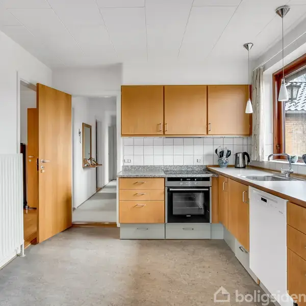 På Grønningen 5 i Rødekro træder du ind i en indbydende arkitekttegnet villa med klassisk profil, hvor de gule sten, de store vinduespartier og den velafgrænsede forhave giver et rart førstehåndsindtryk. Den rummelige gårdsplads og den integrerede garage skaber en behagelig ankomst og gode rammer om hverdagens praktiske gøremål. Huset opleves som et solidt og velfungerende hjem med plads til både ro og fællesskab.Du bor i et roligt og familievenligt kvarter med kort afstand til skole, daginstitu