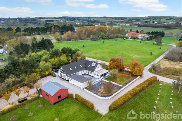 Velkommen til Grønstræde 14 i Højby. Her har du den perfekte ejendom til dig, der søger plads og ro men med kort afstand til hverdagens fornødenheder. Til ejendommen er der et jordtilliggende på 6,5 hektar jord hvoraf en større del udgøres af egen sø. Ejendommen emmer af ro i flotte naturomgivelser og hvis du søger et sted med afstand til naboer, private omgivelser og en moderne bolig er denne ejendom stedet for dig. Ejendommen er ideel for enten den erhvervsdrivende, den pladskrævende hobbymand eller anden der skal bruge ekstra plads. Her er der masser af anvendelsesmuligheder og kun fantasien sætter grænser. Både bolig og udbygninger fremstår pænt og der er i materialevalg ikke indgået mange kompromisser. Stuehuset har et boligareal på 320 m2, et udhus på 60 m2, et stort maskinhus fra 2008 på 199 m2 og en garage fra 2006 på 55 m2. Fra gårdspladsen fornemmer du straks at alt fremtræder præsentabelt og vedligeholdt. Via entréen træder du ind i et stort og rummeligt bryggers med masser af skabsplads og fin plads til både vaskemaskine og tørretumbler. Mindre værelse, der evt. kan benyttes til kontor. Skønt lyst og funktionelt Vordingborg-køkken opsat i 2013 og fremstår meget velholdt. I forlængelse heraf er der spiseplads med fantastisk udsigt til grunden samt udgang til en overdækket terrasse. Stueplan byder endvidere på et stort og anvendeligt rum, hvor der pt. er etableret en bar, idet rummet med fordel kan anvendes til gildesal eller blot til et ekstra samlingsrum. Herfra er der ligeledes store vinduespartier der giver et dejligt lysindfald og udgang til terrasse. 1. sal indeholder fire gode anvendelige værelser, der alle er af en god og anvendelig størrelse. I det ene er der tilhørende walk-in-closet, som føjer ekstra funktionalitet til værelset! Fra soveværelset kan du nyde en fantastisk udsigt over alléen der udgør adgangsvejen til ejendommen samt den øvrige del af grunden. Du har endvidere en hyggelig og aflukket altan, der bidrager med et fantastisk ekstra rum til de mere blæsende dage. På 1. salen er der ydermere et fint badeværelse med alle nødvendigheder. Ved boligen giver de mange terrasseområder masser mulighed for at sol, læ eller skygge efter behov dagen igennem. Til ejendommen hører endvidere et stort maskinhus samt en ældre landbrugsbygning. Med andre ord er der altså utallige anvendelsesmuligheder samt masser af plads til evt. hobby eller erhverv! Med egen sø på er der også muligheder for den jagtinteresserede og den medvirker samtidig til en helt særlig idyllisk stemning. Grønstræde 14 på Ellinge Mark i Højby byder på en ugeneret adresse med plads til fordybelse og privatliv. Højby ligger indenfor en kort cykel- eller gåtur og er et hyggeligt lokalsamfund, hvor du både finder skole, institution og indkøbsmuligheder. Her er også gode forbindelser til offentlig transport med tog til Nykøbing og Holbæk. Lyder ovenstående interessant? Kontakt os på 59 91 33 33 for en fremvisning af denne skønne ejendom.