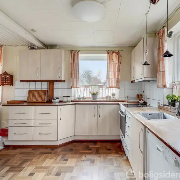 På Grønvang 19 i Sønder Omme får I en hverdag med ro, nærvær og velfungerende rammer. Planløsningen er indrettet med fokus på samvær og god plads til familien, og både hus, have og lokalområde går op i en harmonisk helhed. Villaen fremstår klassisk med murede facader som danner ramme om en funktionel, familievenlig indretning. I stueplan ligger køkkenet i åben forbindelse med alrummet, så hverdagens aktiviteter samles ét sted med plads til madlavning, lektier og samvær. Indretningen gør det let