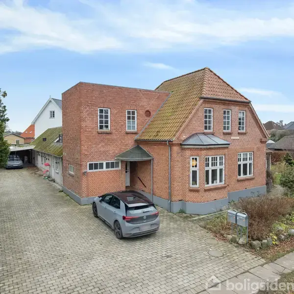 Villa med plads til den helt store familie eller flere generationer På en meget central adresse i Vordingborg finder I denne store villa fra 1922, som har plads til den helt store familie eller flere generationer under samme tag. Førstesalen byder nemlig på en fuldt funktionel lejlighed med eget køkken-alrum, bad og to værelser, mens stueplanet er indrettet med et værelse, to badeværelser, et bryggers, et køkken-alrum og hele fire stuer, hvor flere af dem let kan fungere som værelser. Hertil er