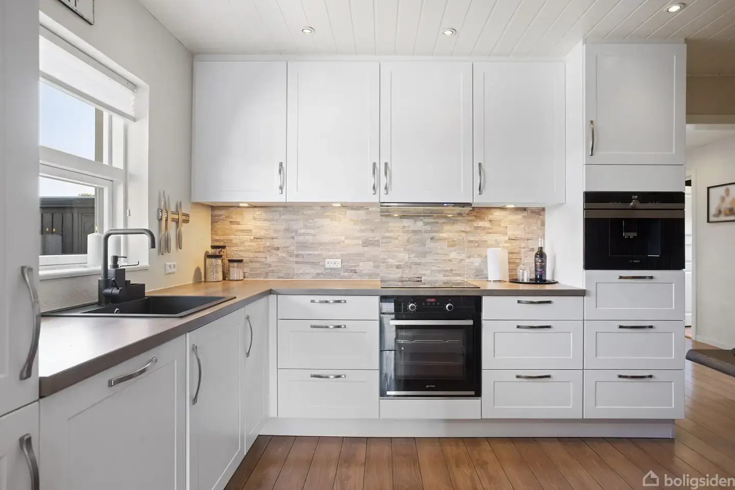 I denne indbydende villa på 136 kvadratmeter finder du et hjem, der stråler af charme og komfort. Bygget i 1965 og beliggende på en skøn grund på 700 kvadratmeter, præsenterer boligen sig med store vinduer, der lader det varme lys strømme ind i stuerne, og giver en følelse af rummelighed og velvære. Køkkenet er et moderne, funktionelt rum med eksklusive materialer og et lækkert design. Her kan du nyde samvær med familie og venner, mens du tilbereder dine yndlingsretter. Den åbne planløsning mel