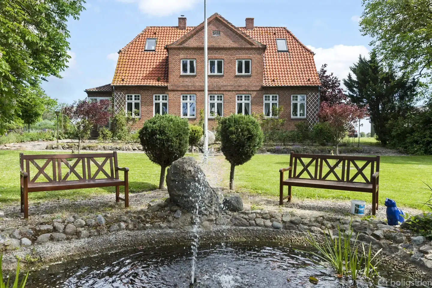 Roligt beliggende på landet i Gryderup med udsigt til åbne marker, finder I denne helt særlige ejendom, som er indrettet i herskabelig stil med smukke plankegulve, stuk og sprossede vinduer. Til ejendommen hører stor parklignende have med flere havedamme med broovergang, flot beplantning og bænke, hvor I kan sidde i ro og fred samt beundre den smukke have og udsigten herfra. Selvom haven er parklignende, er der store græsarealer, som børnene kan boltre sig på. På legepladsen er der anlagt bålpla