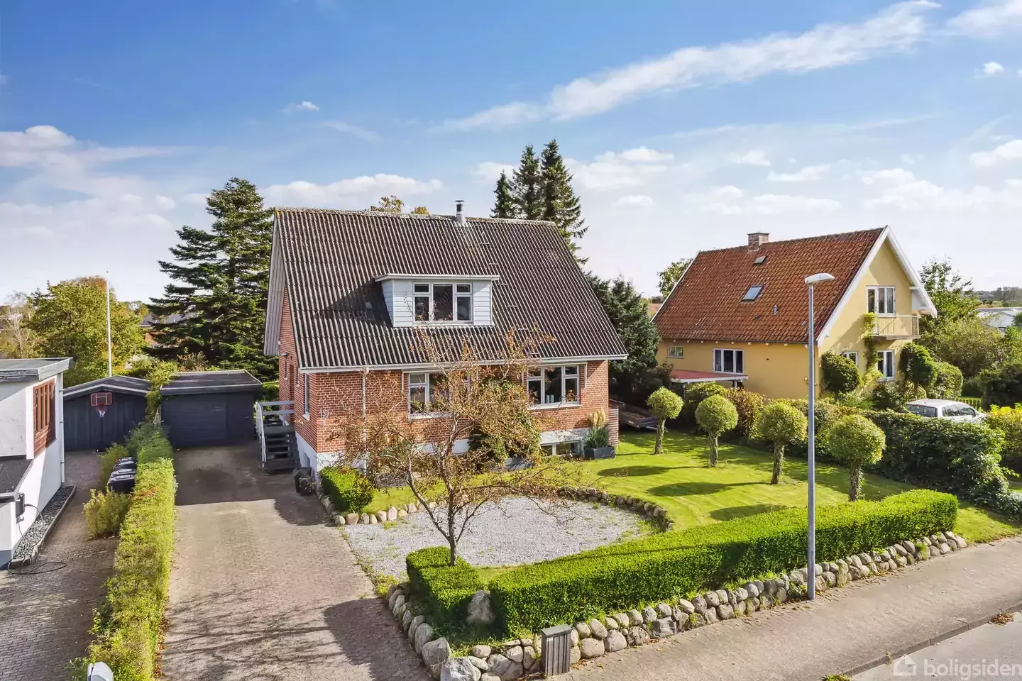 Velkommen på Grydstedvej!Ved første øjekast fornemmer man straks charmen og det klassiske udtryk ved denne bolig. Vi ankommer via indkørsel med god plads til parkering. Her kører vi helt op til stort skur, med masser af muligheder og plads til opbevaring. Haven er et kapitel for sig og grunden rummer hele 1.193 m2. Fra vejen er det svært at fornemme hvordan den åbner sig op i baghaven. Her er man fuldstændig ugeneret, med flere store træer og hyggekroge rundt haven. Her er god plads til boldspil