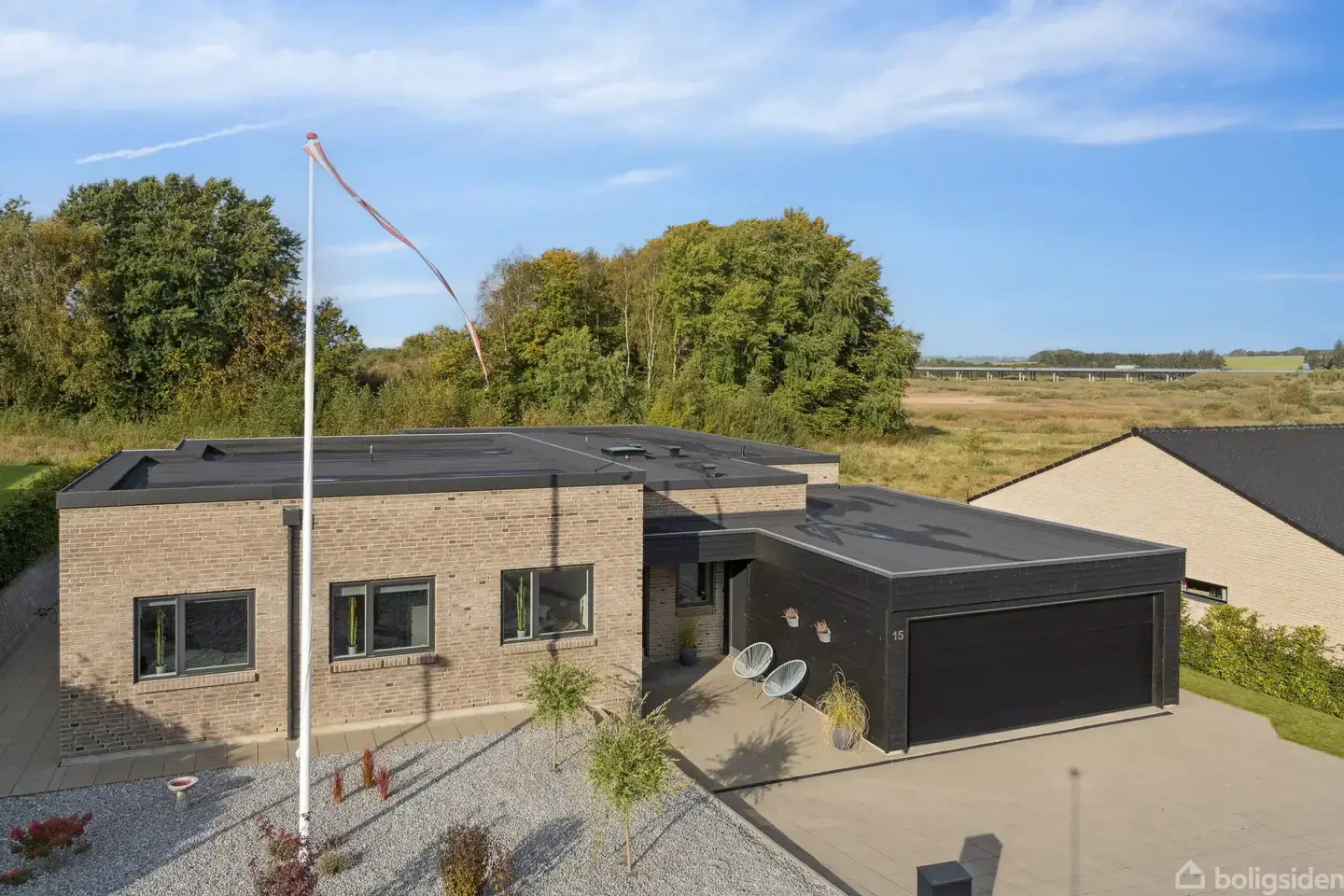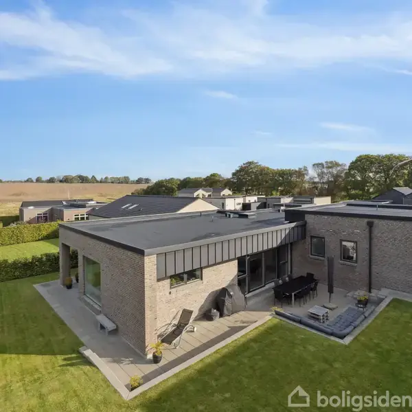 Lækkerierne og finesserne står i kø, når det kommer til denne udsøgte etplansvilla fra 2019. Ejendommen ligger i første parket til naturen, hvad der både gavner udsigten og det rige dyreliv, som opleves på tværs af hus og have. Velkommen til Balle. 195. Så mange kvadratmeter får familien at boltre sig på, og her er sociale stunder prioriteret i lige så høj grad som alenetid. Det udmønter sig blandt andet i et imponerende opholdsrum, hvor grænsen mellem køkken og alrum er pist væk, mens stuen li