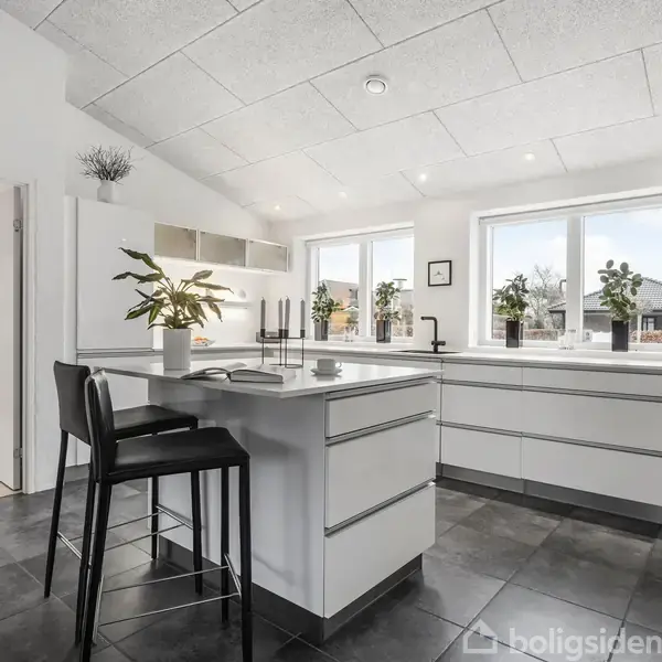 Åbent hus med tilmeldingskrav 11/2 - klik på billede - Guldagergårdsvej 13 i Guldager Kirkeby er en kvalitetsvilla, der byder på 166 m² velindrettet bolig i ét plan med murede indervægge og loft-til-kip. Med et grundareal på 808 m² er der rig mulighed for at nyde både inde- og udendørslivet i rolige og naturskønne omgivelser. Villaen er opført med vandskurede ydervægge, der er nymalet i 2024, træ/alu lavenergi vinduer, solcelleanlæg samt et sort engoberet tegltag, hvilket sikrer et energimæssigt fremtidssikret hus med minimalt vedligehold og et stilrent udtryk. Husets hjerte er det fantastiske køkken-alrum, der imponerer med masser af bordplads og skuffer i det lyse køkken med hvidt KVIK inventar. Her er der plads til både hverdagens måltider og festlige sammenkomster. Loft til kip i alle rum skaber en lys og rummelig atmosfære, mens den indretningsvenlige opholdsstue inviterer til hyggelige stunder med familien. Det indbydende indgangsparti har en praktisk adskillelse til bryggerset. Villaen er ideelt indrettet med en separat børneafdeling, der rummer 3 dejlige og lyse værelser, hvilket giver børnene deres eget fristed. Forældreafdelingen har walk-in garderobe og direkte adgang til et rummeligt badeværelse. Udendørs er haven et kapitel for sig selv. Her er du helt ugenert, og den solvendte terrasse samt det hyggelige orangeri giver rig mulighed for afslapning eller/og havedyrkning. Den skønne overdækkede terrasse forlænger udendørssæsonen. Endelig sikrer den integrerede garage og udhus god opbevaringsplads. Beliggende i et nyere parcelhuskvarter i Guldager, er du tæt på både Rema 1000 og Den Internationale Skole. Der er også et praktisk og trygt stisystem til at komme til Sønderris Skole, diverse fritidsaktiviteter samt venner og er dermed perfekt for børnefamilien. En indbydende og indflytningklar moderne villa der skal ses!