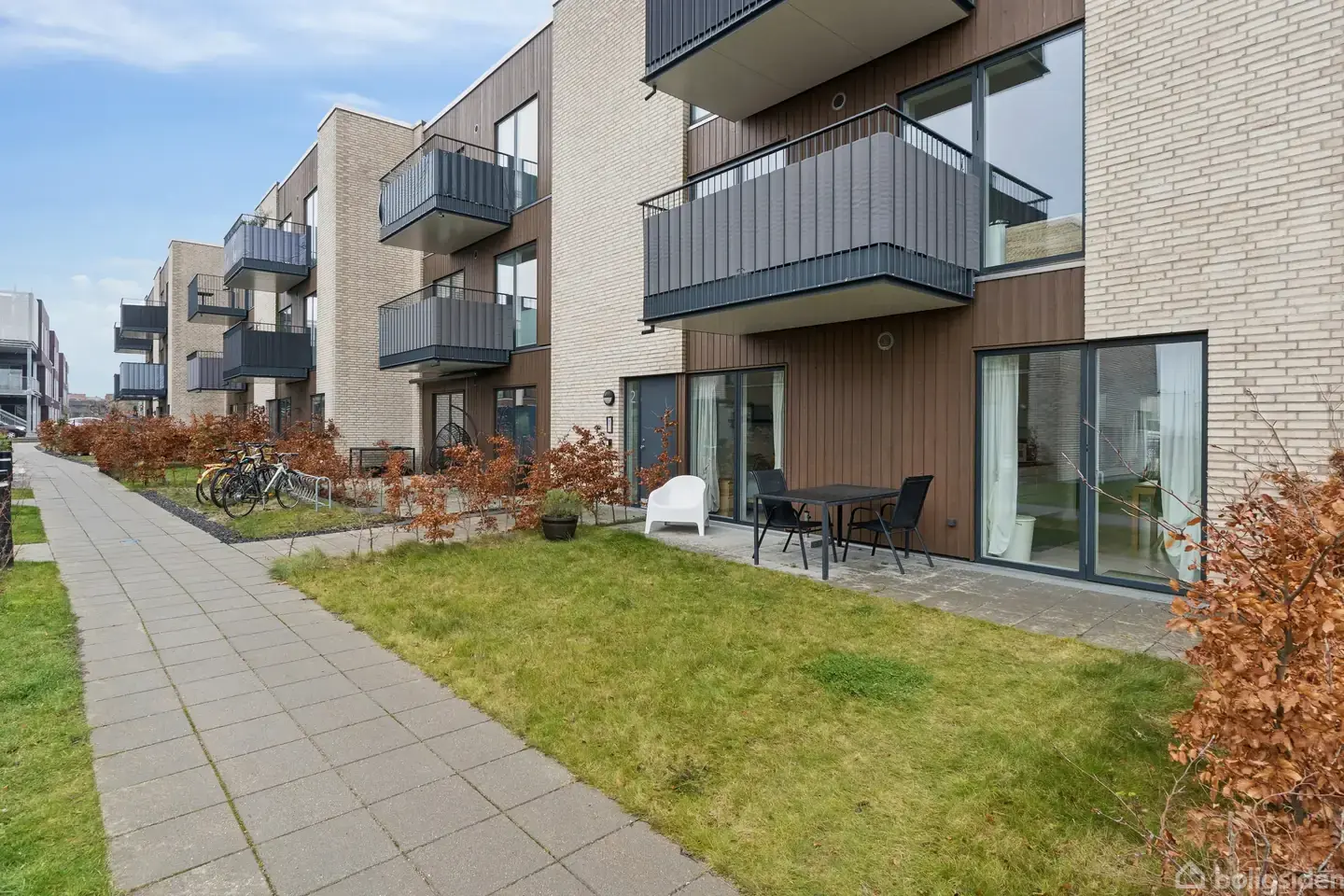Nyopført stuelejlighed i NærhedenVelkommen til Nærheden, hvor denne moderne stuelejlighed for enden af rækken nu kan blive din. Lejligheden ligger i den nyere bydel Nærheden i Hedehusene, hvor alle hverdagens fornødenheder inklusiv Hedehusene Station er inden for kort gåafstand. Boligen er lys og velindrettet og rummer et stort køkken alrum samt to værelser og et badeværelse. Der medfølger en solrig terrasse med udsigt over områdets grønne arealer, og der er også parkering tæt på hjemmet.Køkken