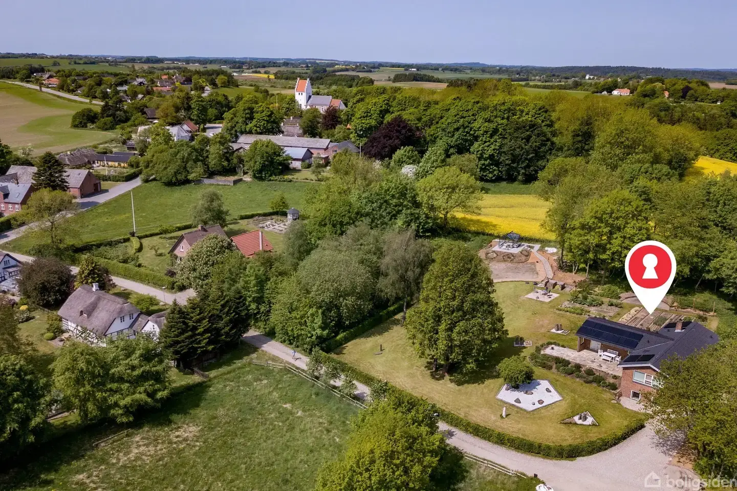Midt i skønne naturomgivelser tæt på Gudenåen og skovDet er med sans for former, funktion og æstetik, at denne villa er løbende opdateret og formet til et hjem, der er noget ganske særligt. Detaljegraden er usædvanligt høj, hvor man eksempelvis har organiseret loftspots efter det gyldne snit - ligesom flere andre elementer både på hus, have, garage og haveskur er placeret i henhold til samme princip.Villaen er rummelig med fire værelser, to badeværelser, lyse opholdsmiljøer og en række disponibl