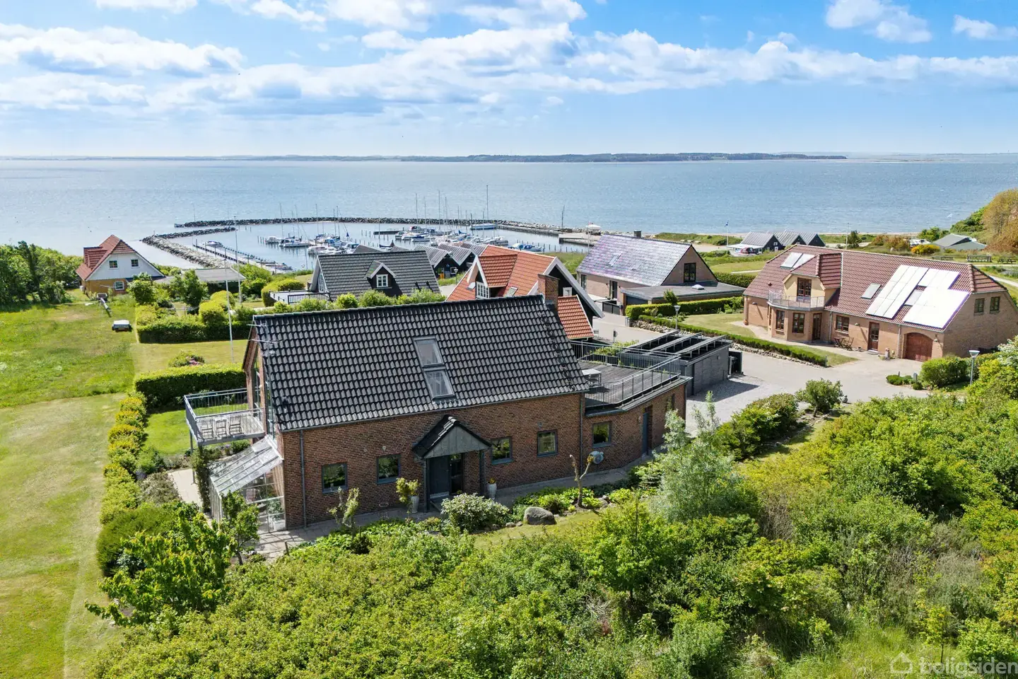 I det hyggelige område Gyldendal ved Gyldendal havn ligger denne kvalitetsvilla som også kan anvendes som fritidsbolig. Den markante, fuldmurede villa i hårdtbrændte sten er udført med sans for kvalitet og ikke mindst med en bevidsthed om det område, den er placeret i. Huset byder nemlig på en sublim udsigt til tre sider, hvor Limfjordens udmunding i Venø Bugt bliver en særdeles smuk kulisse. De tre værelser, de lyse opholdsmiljøer og de to badeværelser gør indretningen funktionel og fleksibel,