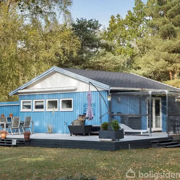 Indflytningsklart fristed med fred, lys og nærvær ved Gudmindrup Lyng På Gyvelager 15 får du et charmerende, blåmalet træhus på 45 m² med en overraskende god planløsning og en kæmpe naturskøn grund på hele 1.200 m². Huset er let at holde, overskueligt at indrette og klar til, at nye ejere kan rykke direkte ind og bruge det fra dag ét. Indenfor er stemningen lys og afslappet. Stue og køkken samler sig i ét hyggeligt opholdsrum med flotte klikgulve, store vinduespartier og dobbeltdør direkte ud til terrassen – så inde- og udeliv flyder sammen på de varme dage. Varmepumpen på væggen sikrer nem og billig opvarmning og køkkenet er praktisk indrettet med masser af skabe, stålbagplade ved komfuret og fin arbejdsplads ved vinduet. Planløsningen rummer desuden to gode værelser: et soveværelse med stor, spejlskydedørsgarderobe og et ekstra værelse, der i dag bruges som gæste-/kontor med sovesofa og skriveplads – perfekt til overnattende familie eller hjemme arbejdsro på en regnvejrsdag. Badeværelset er lyst med vindue, bruseniche og hvidt inventar. I entréen er der smart opbevaring til sko og overtøj. Udenfor folder sommerlivet sig for alvor ud. Den store, hævede træterrasse løber langs huset i flere zoner med plads til både spisebord, solsenge og loungemøbler. En del af terrassen er afskærmet under en let pergola med klatregrønt – ideelt til lange aftener med grill, selv når duggen falder. På grunden er der store, åbne græsarealer til leg og kroket, høje birk og fyr der giver læ og privatliv, plantekasser, vandpost ved terrassen og et praktisk overdækket areal/carport med plads til cykler og haveting. Her er passet godt på, og alt fremstår enkelt, funktionelt og velholdt – præcis sådan et sommerhus skal være. Det er et sted, hvor skuldrene automatisk falder ned, og hvor både familie og venner føler sig hjemme fra første øjeblik. Drømmer du om et sted, hvor du kan finde fred, nærvær og natur lige uden for døren — og hvor stranden og Gudmindrup Lyngs feriecharme er inden for nem rækkevidde — så er det her dit nye fristed i Odsherred.